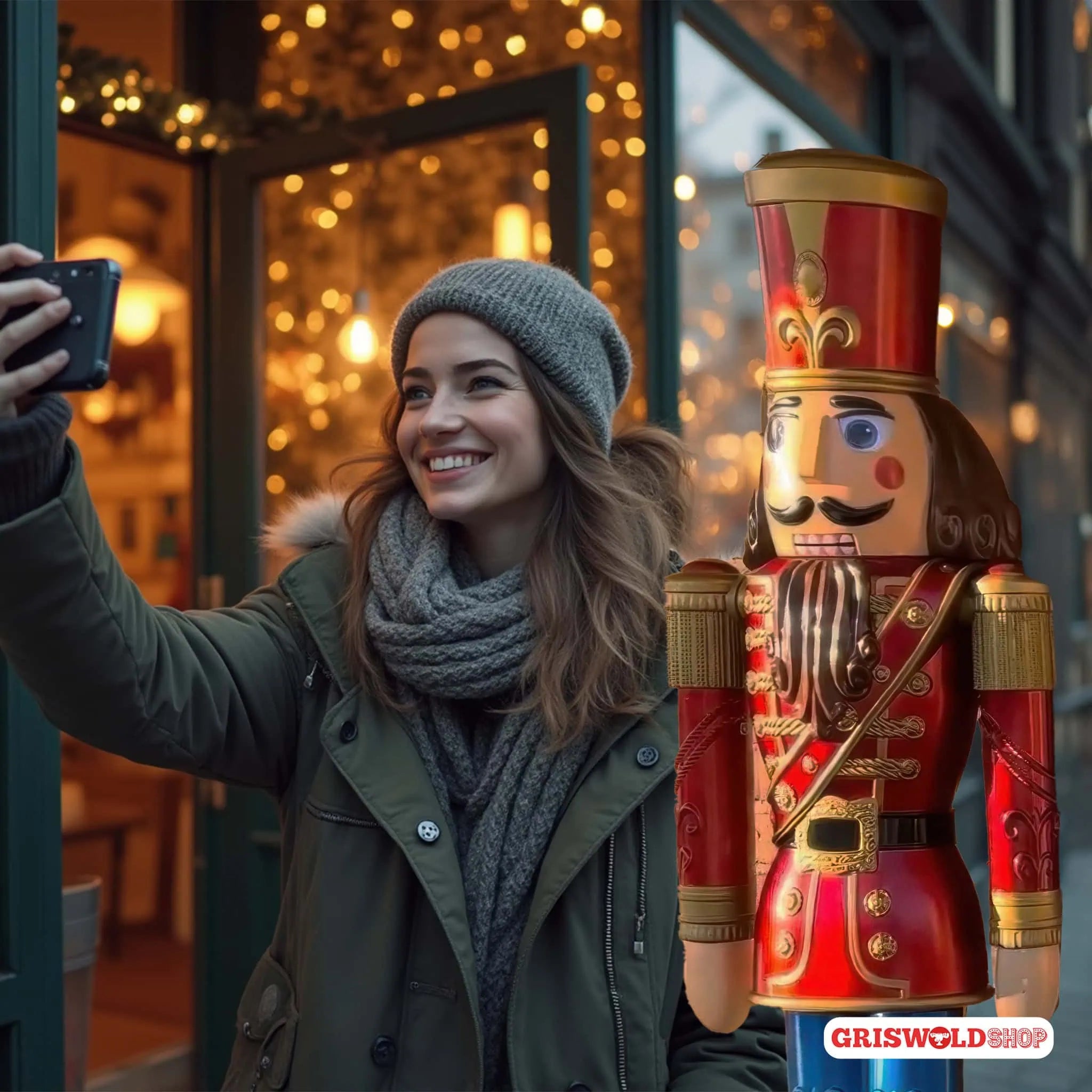 Weihnachtstraum XL – Dein Weihnachtsmärchen wird wahr! 🎄Was für ein meisterhaftes Schmuckstück! Dieser lebensgroße Nussknacker bringt den Zauber der USA direkt zu dir und wird zum Glanzstück in jedem Weihnachtswohnzimmer oder Schaufenster. Als standhafter Soldat bewacht er stilvoll Deine weihnachtlichen Gemächer, während seine faszinierenden Augen hin- und herwandern und klassische Klänge aus dem Nussknacker ertönen. Wir sind schockverliebt! Einer schmückt unser Büro, und den Rest teilen wir mit euch. Aber seid schnell – unsere Weihnachtshelden sind rar wie Schneeflocken im Sommer! In Minuten aufgebaut und in Sekunden ins Herz geschlossen: Diese Lifesize Animatronic wird das Highlight deiner Weihnachtsfamilie! Eigentlich im Griswoldshop beheimatet macht unser charmanter Riese nun auch Gruselfreunde happy.