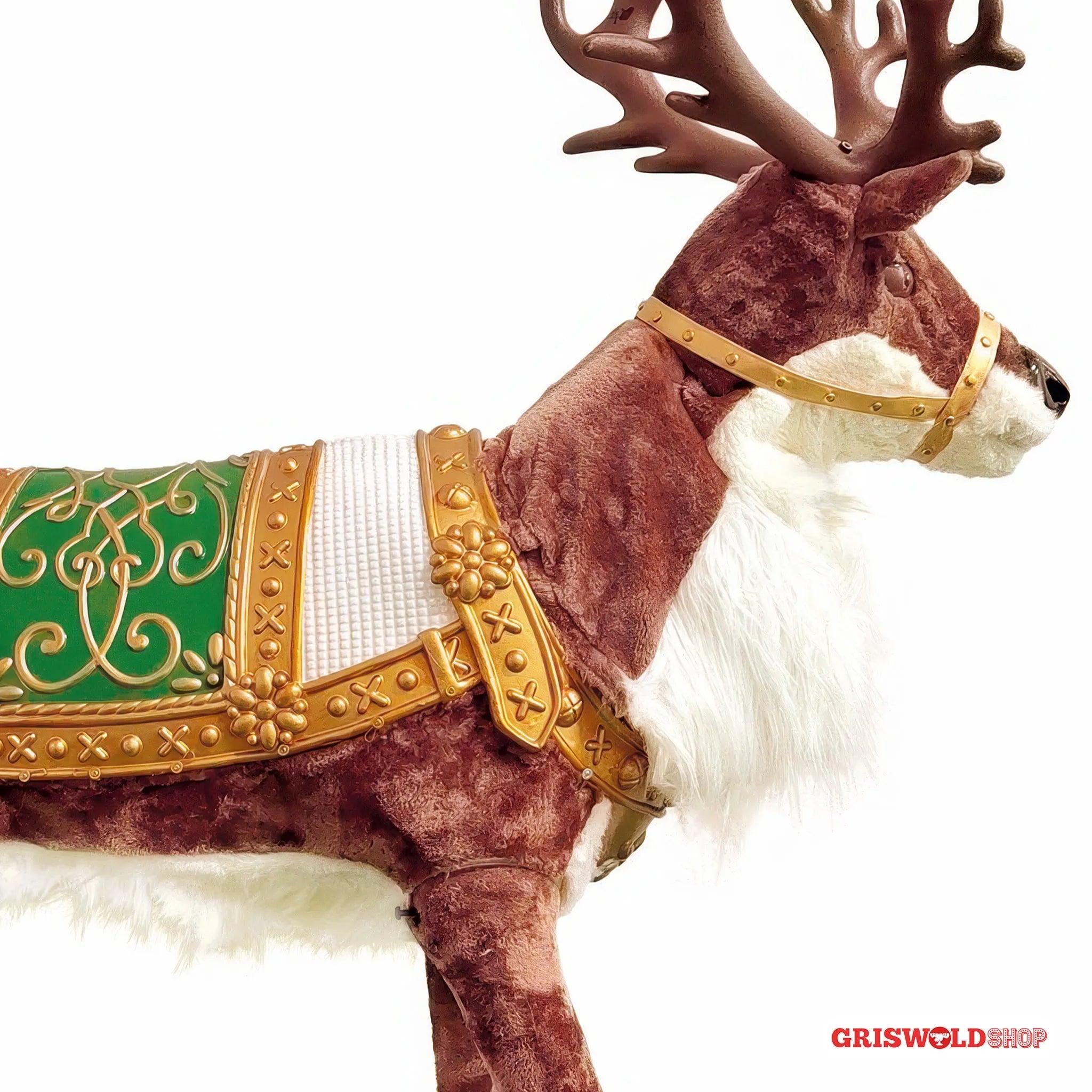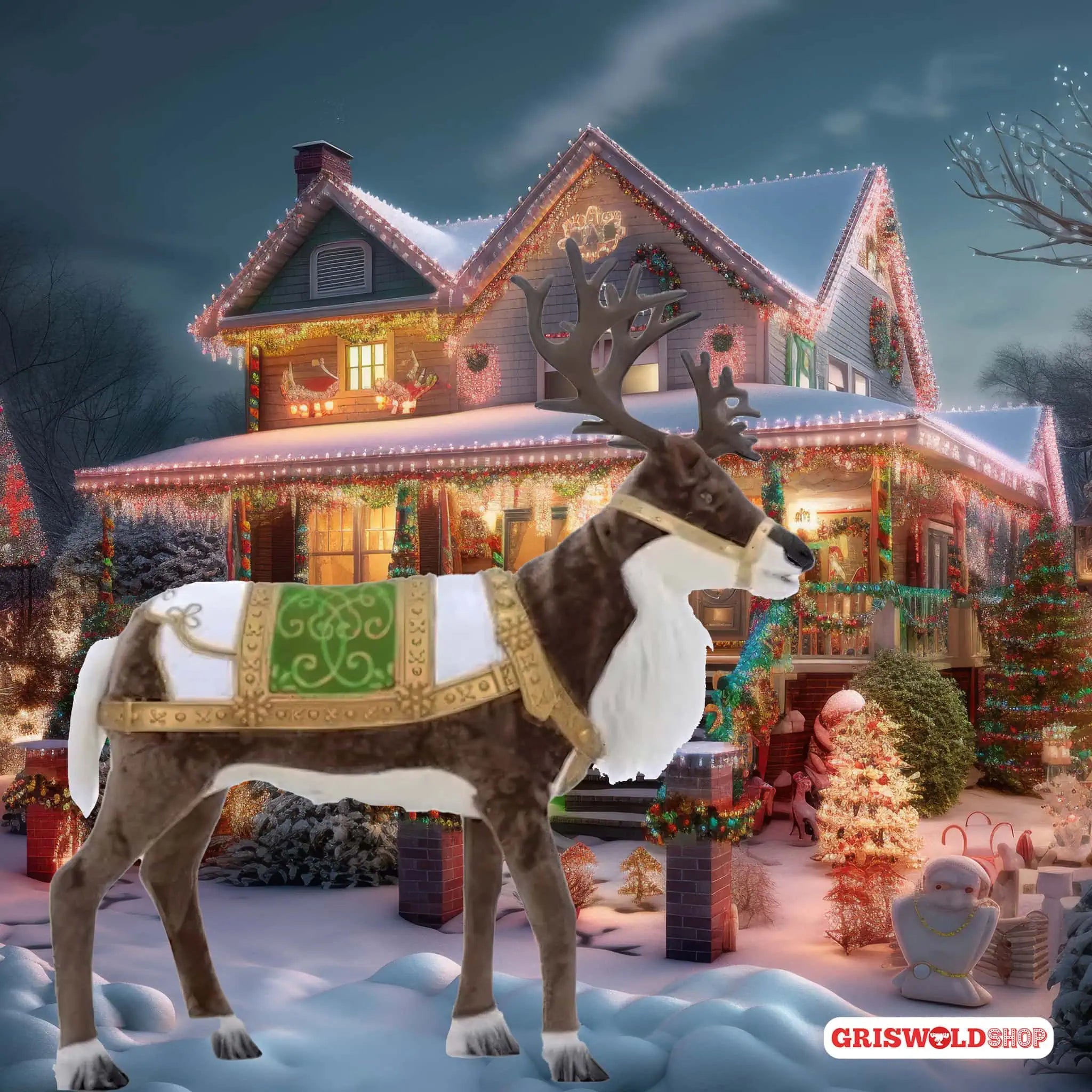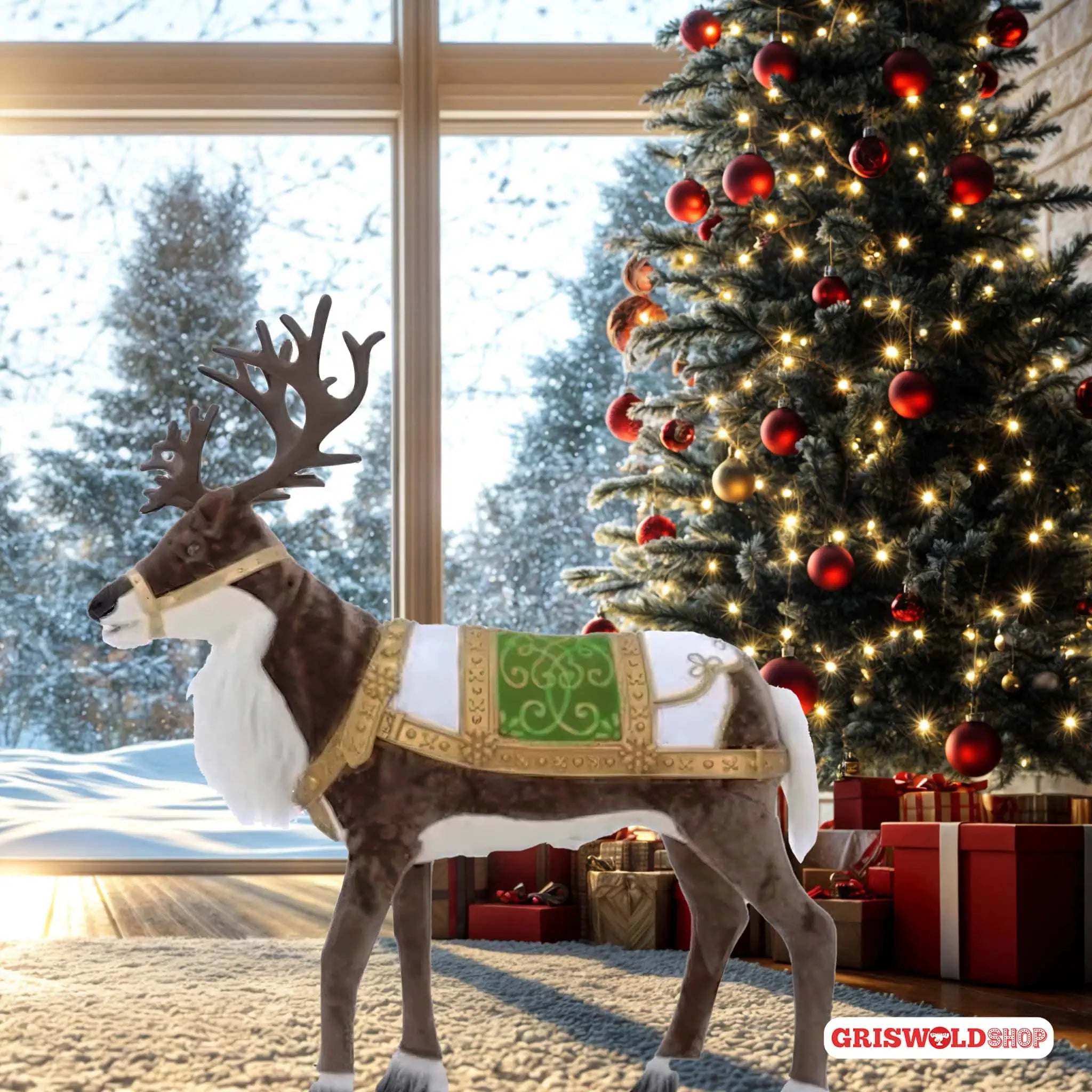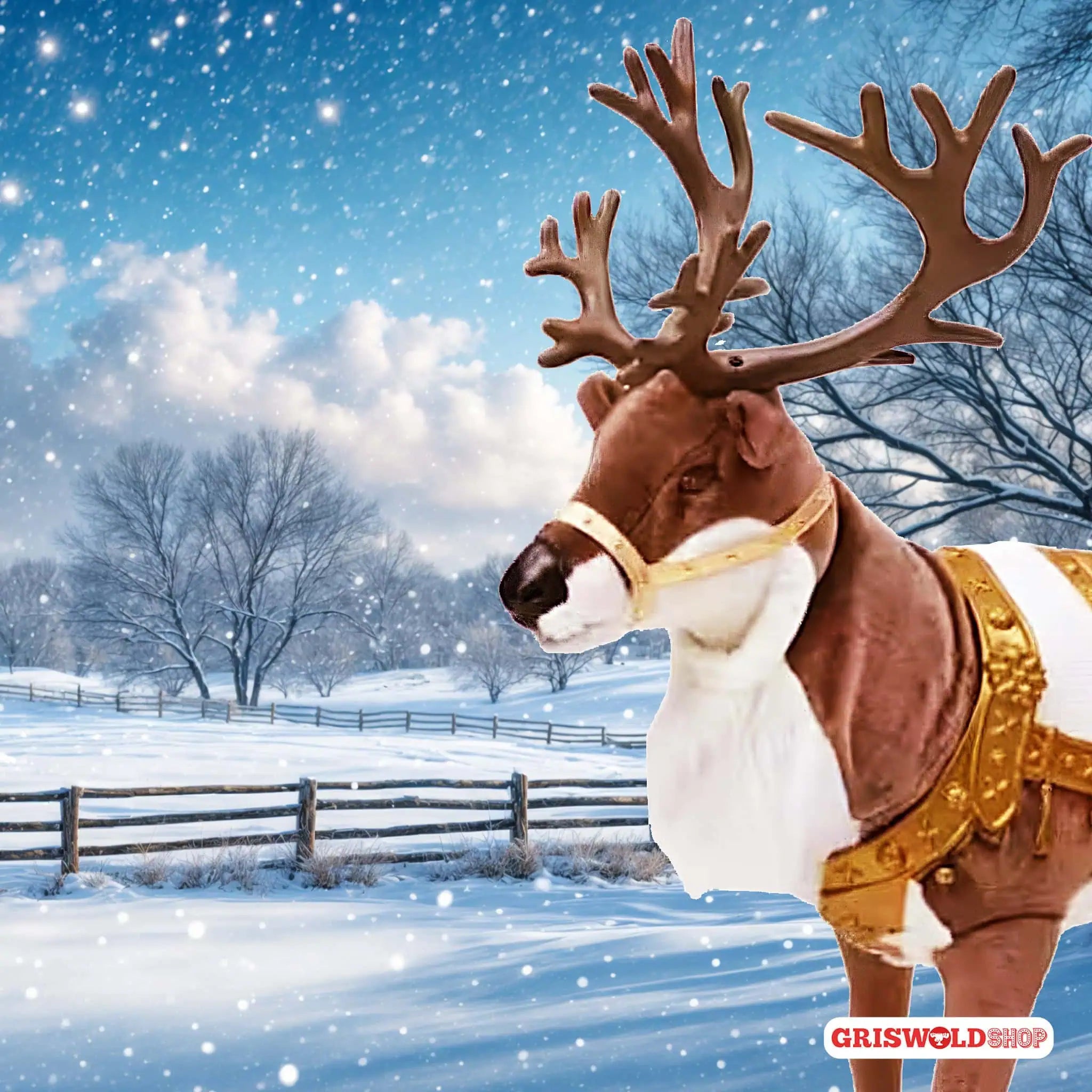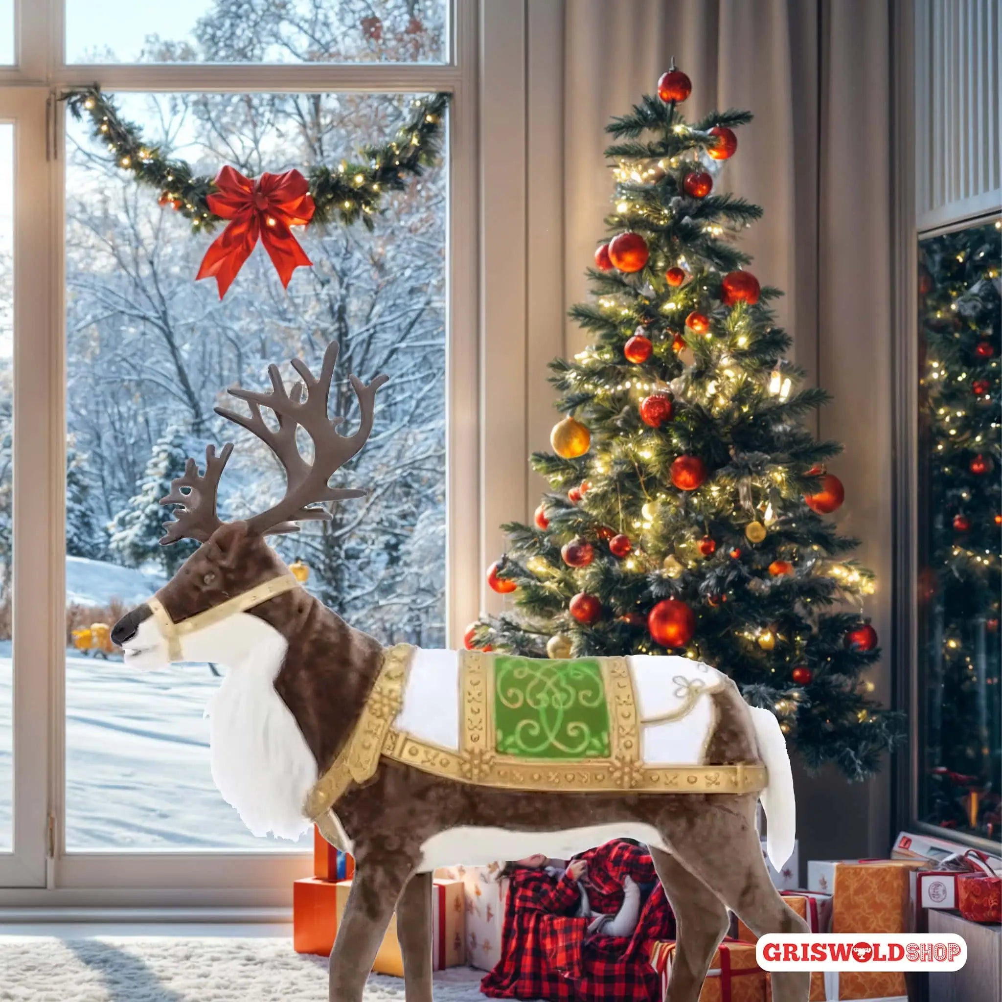 Dein eigenes Rentier… da wird der Nachbar stutzen wenn er Santas Flugtierchen plötzlich bei Dir im festlich geschmückten Wohnzimmer erspäht. Dieses wunderschöne Exemplar aus Santas Stall ist ein wahr gewordener Weihnachtstraum für jung und alt. Wenn Rudolf anfängt seinen Kopf zu drehen, der Sattel festlich leuchtet und blinkt und die Weihnachtsmusik ertönt fühlt man sich wie im schönsten Spielwarengeschäft. Schnell aufgebaut, inklusive Netzanschluss für die heimische Stube. Kein Horror nichts was das Herz stehen lässt sondern es nur wärmt und erfreut. Eigentlich steht das Prachtexemplar im Griswold Stall aber es ist viel zu schön um nicht auch hier zu grasen. Ho-ho-hol's Dir.