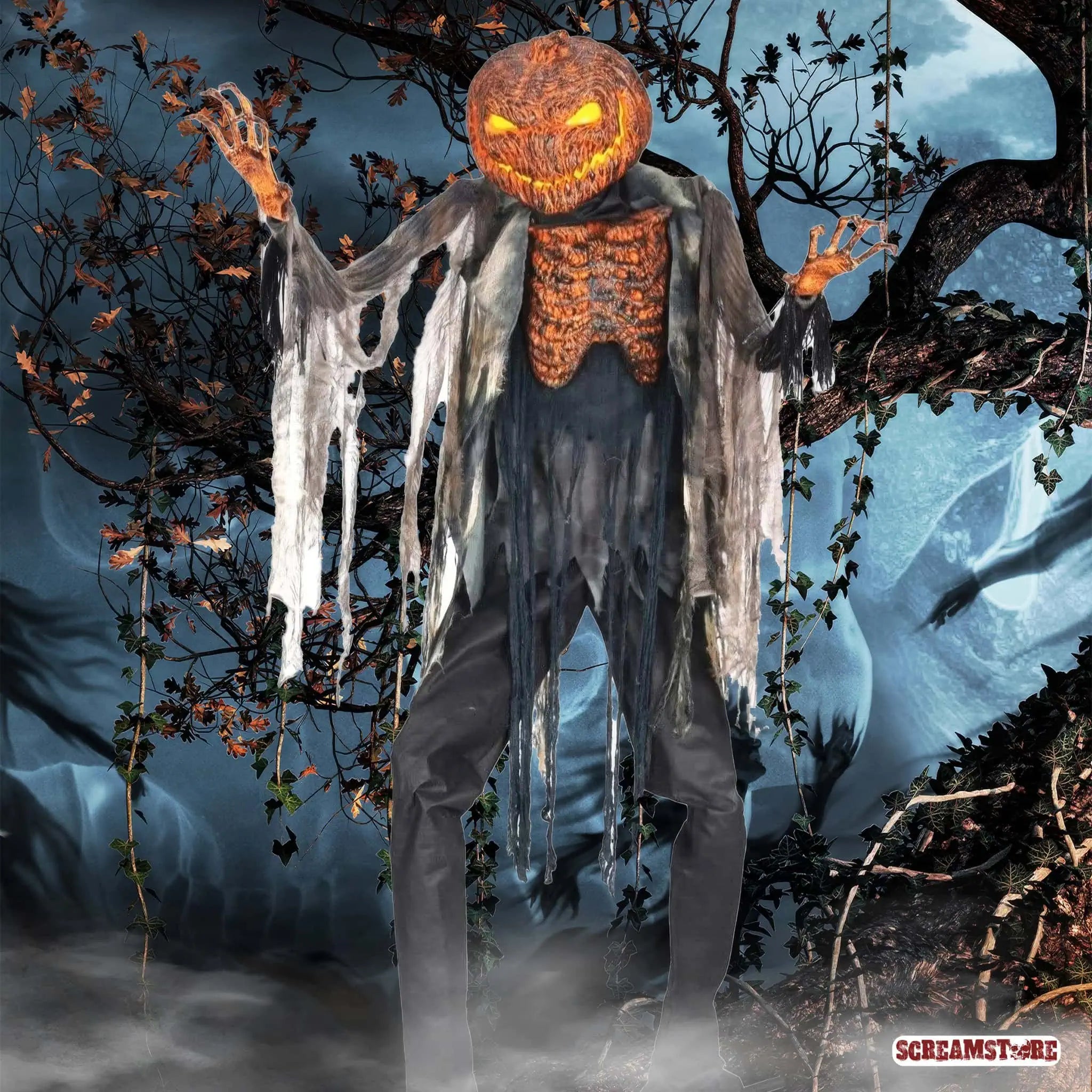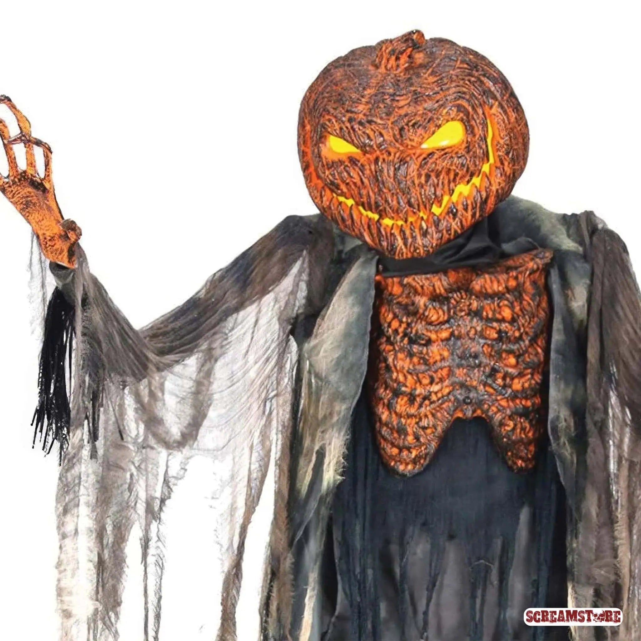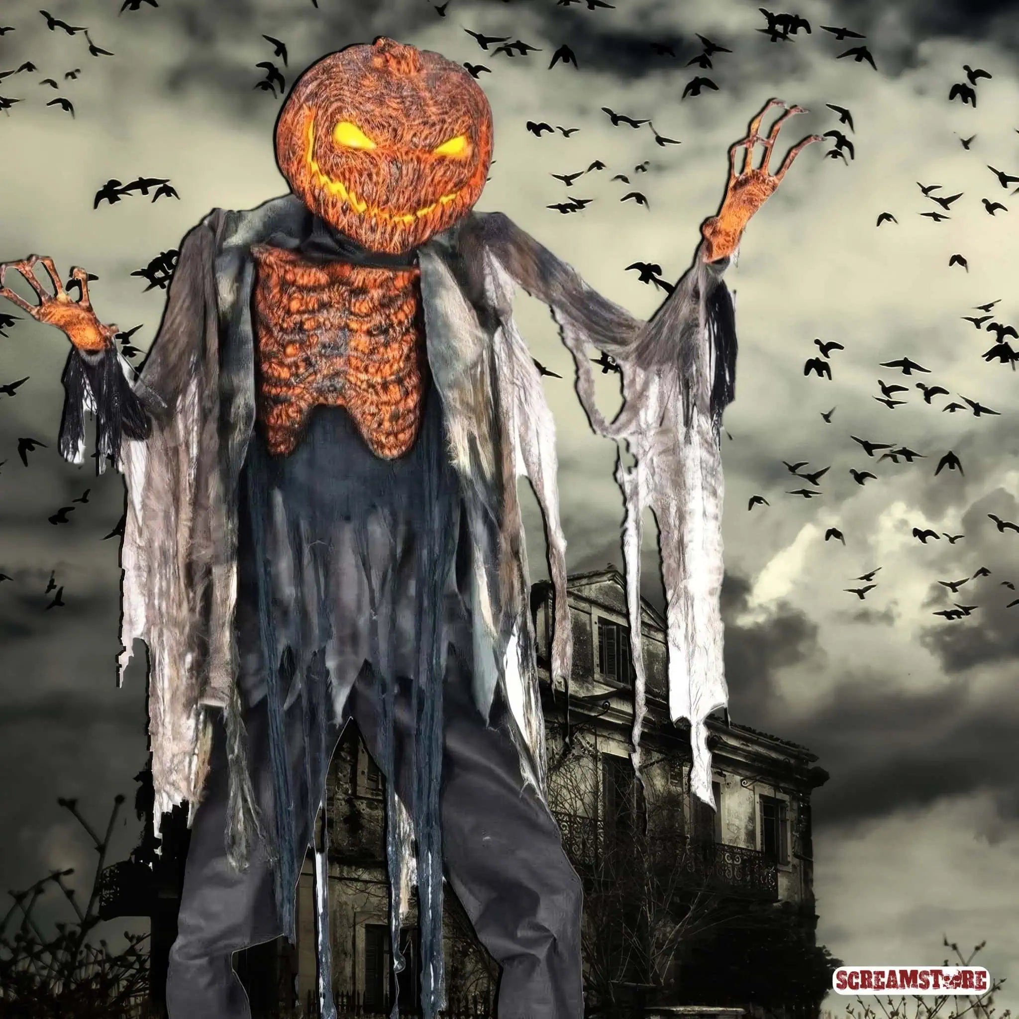 Frisch aus dem Maisfeld... kommt diese gigantische Horrorvogelscheuche. Immer nur Krähen erschrecken, wird auf die Dauer langweilig. Ein Tapetenwechsel kann da nur guttun. Also rein in die City, da wo die Menschlein wuseln und ein jeder Hieb trifft und sitzt. Verschließt die Türen. Die Halloween Scarecrow holt die Bluternte ein. Eine der besten Animatronics aller Zeiten. Look, Bewegungen, Licht und Soundeffekte sind sagenhaft und treiben selbst echten Gruselprofis noch den Angstschweiß auf den Rücken. Prädikat, absolut Geisterbahn tauglich.