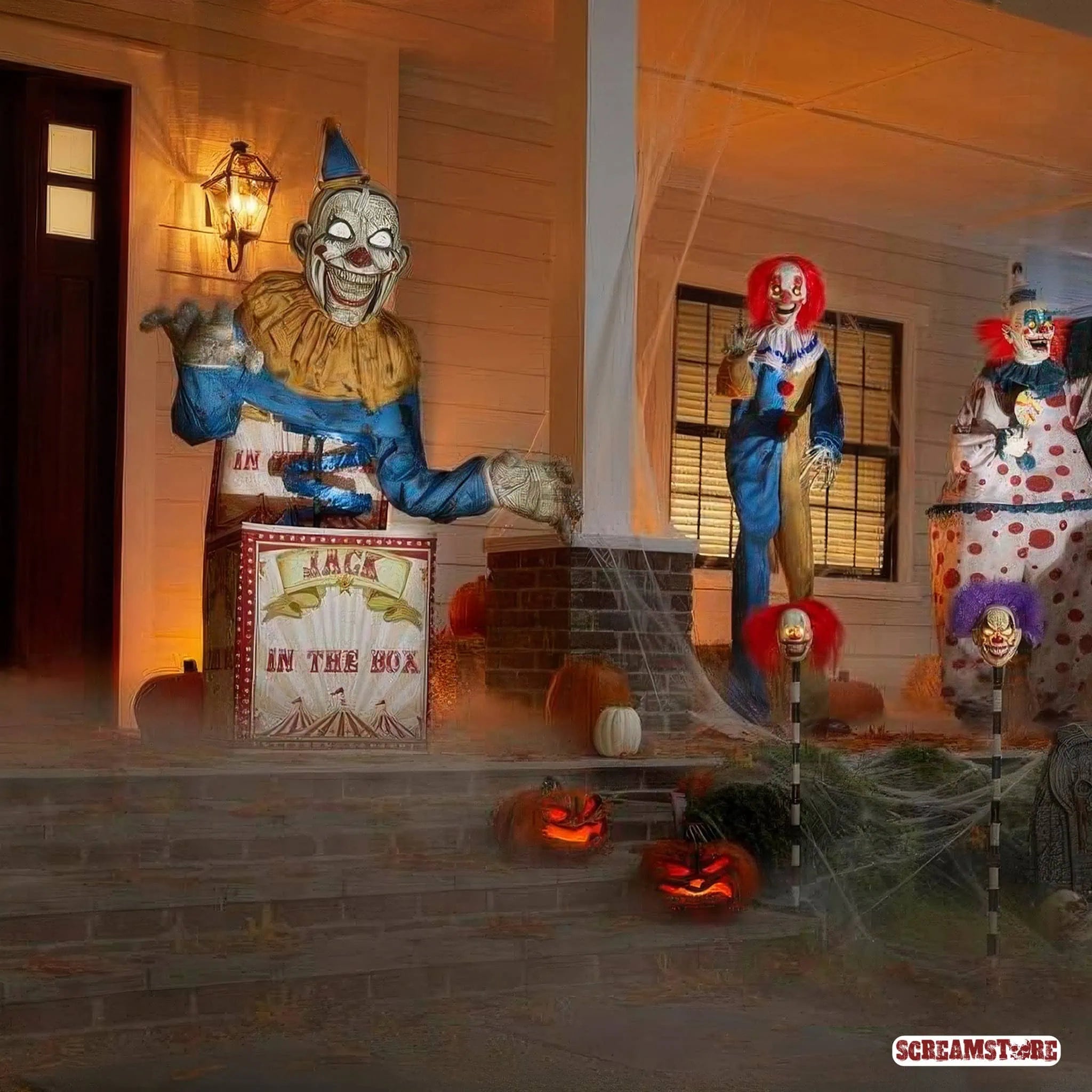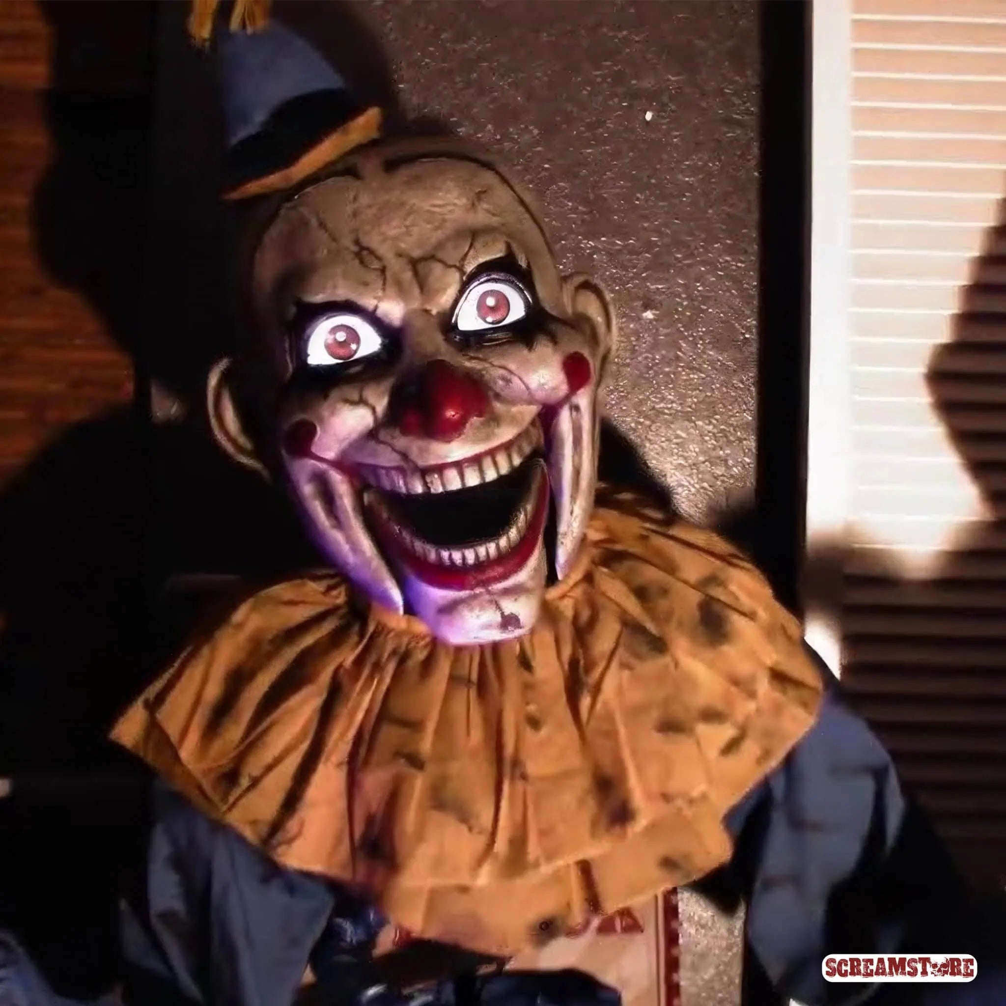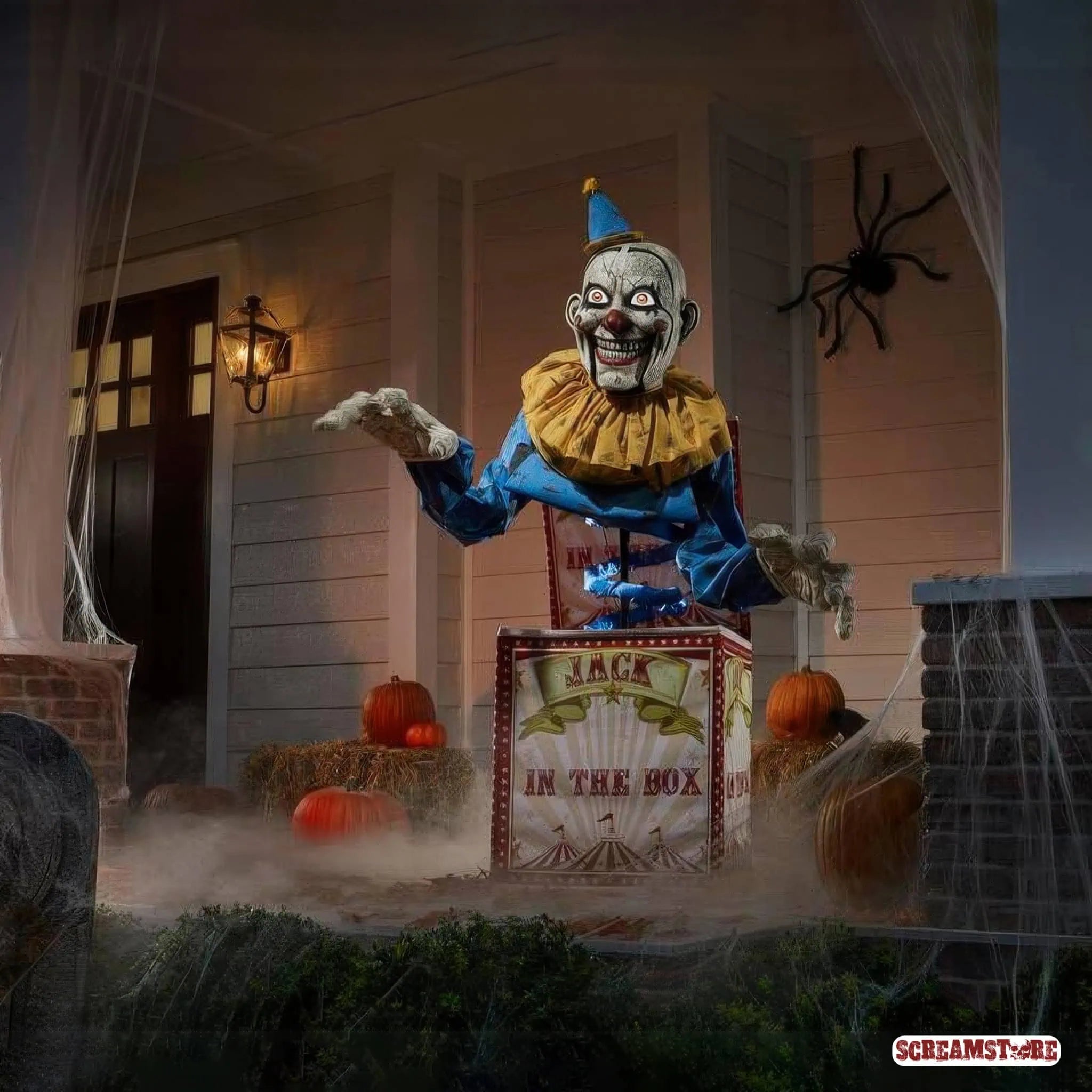 Clowns lieben Kinder? Also Jack nicht. Der hasst generell jeden, egal wie alt oder jung. Zu gerne lockt er dumme Menschlein mit seiner lustigen Box an, die aussieht wie ein großes buntes Geschenk. Unboxing-geil gesteuert treibt er die ahnungslosen Wesen in seine perfide Falle, Denn hinter der grinsenden Fassade verbirgt sich Angst, Folter und Tod. Klingt verlockend? Na dann hol Dir dieses schöne bunte Box nach Hause. Wir versprechen: Dieses Schachtelfest bleibt für alle in Albtraumhafter Erinnerung. Sagenhafte XXL-Animatronic direkt aus den USA, meisterhaft gestaltet und voller düsterer Magie. Ergreife sie, bevor sie dich ergreift!