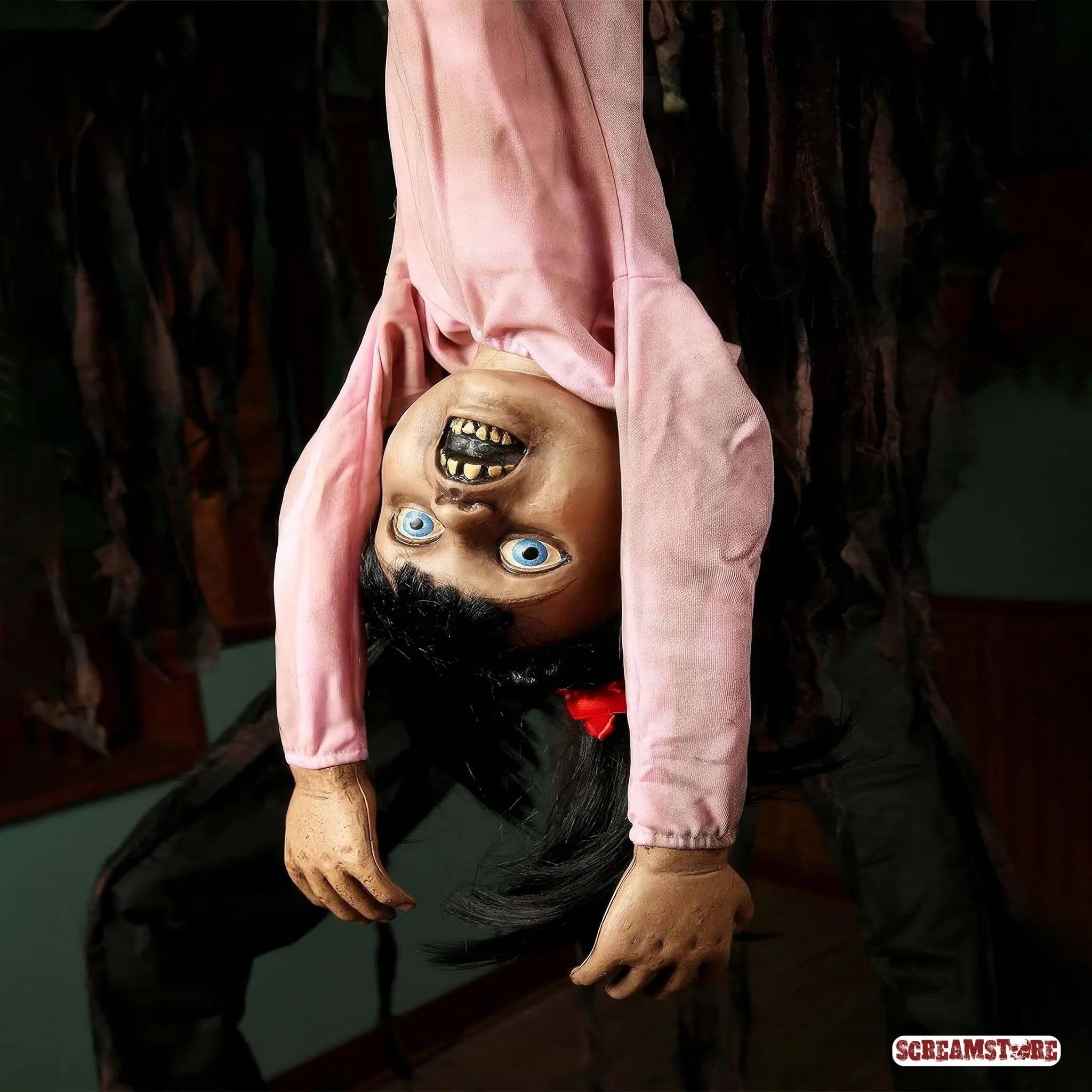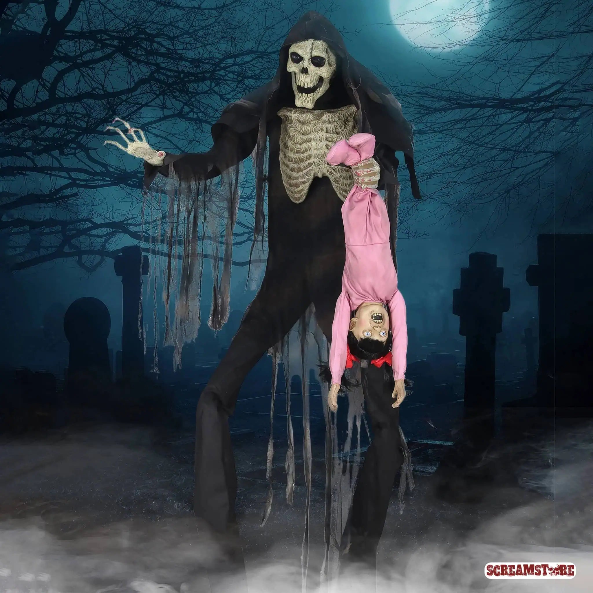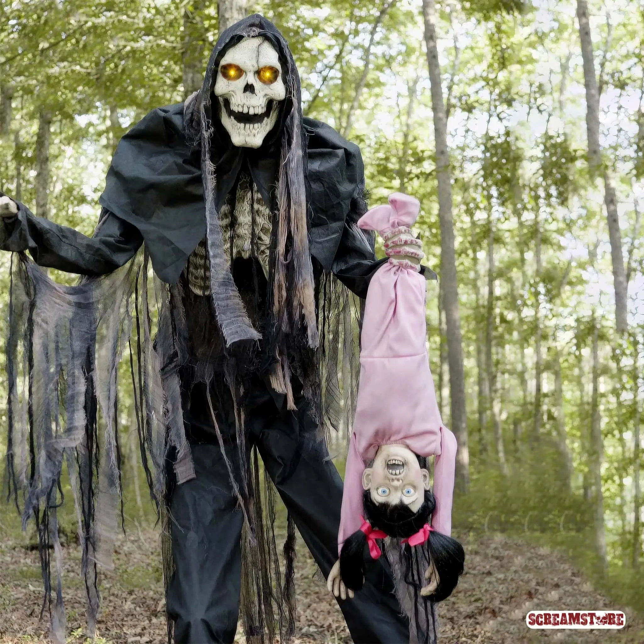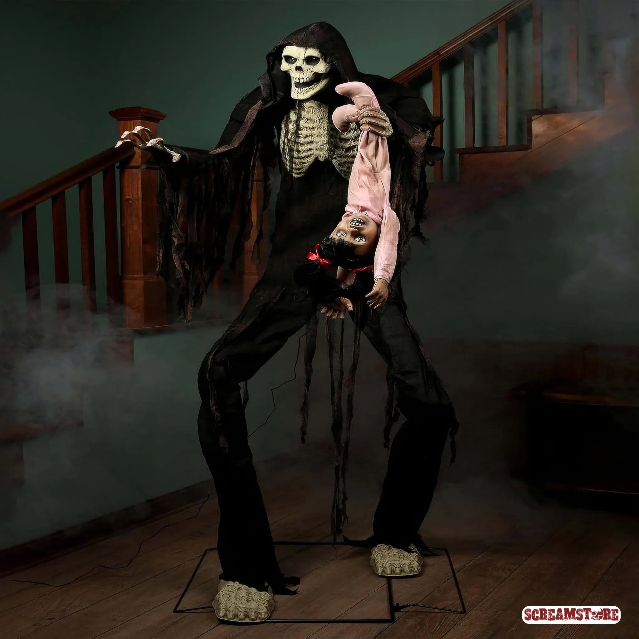 Größer kann Böse nicht sein... der Bogeyman ist definitiv einer der Macker die in der Unterwelt den Ton angeben. Wer würde diesem Hünen in Leichengestalt auch widersprechen wollen? Über 2 Meter groß, die kreischende Beute griffbereit. Der Mix aus schurkischen Lachen und angsterfüllten Schreien wird Sie verfolgen, wie er uns verfolgte. Eine sagenhafte Animatronic und ein absolutes Sammlerstück in der Schatzkammer der Screamstore Raritäten. Kult pur, fragt sich nur wer einem mehr Angst macht. Der Dämon oder das kreischende Balg. Die Kombi jedenfalls ist schaurig par excellence.