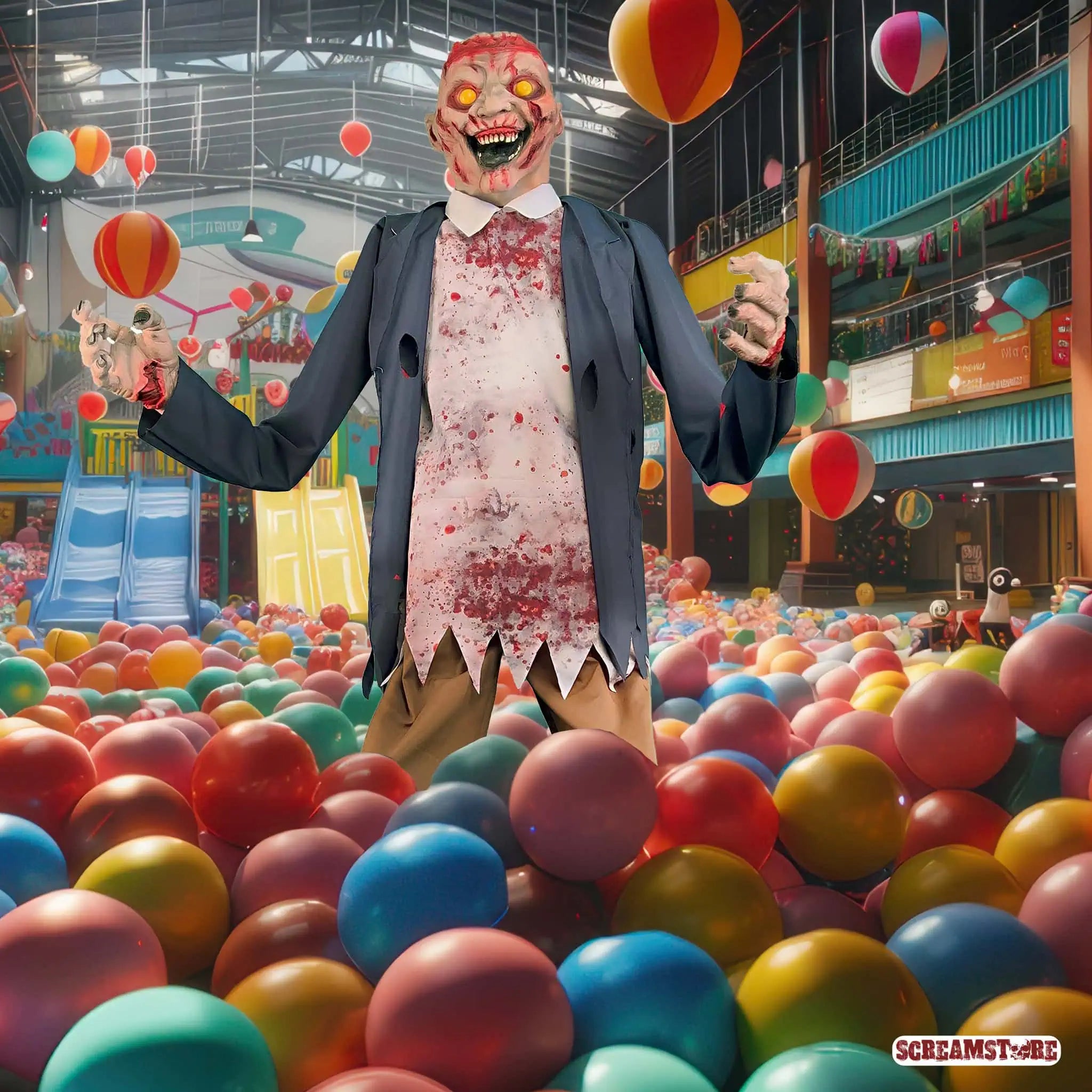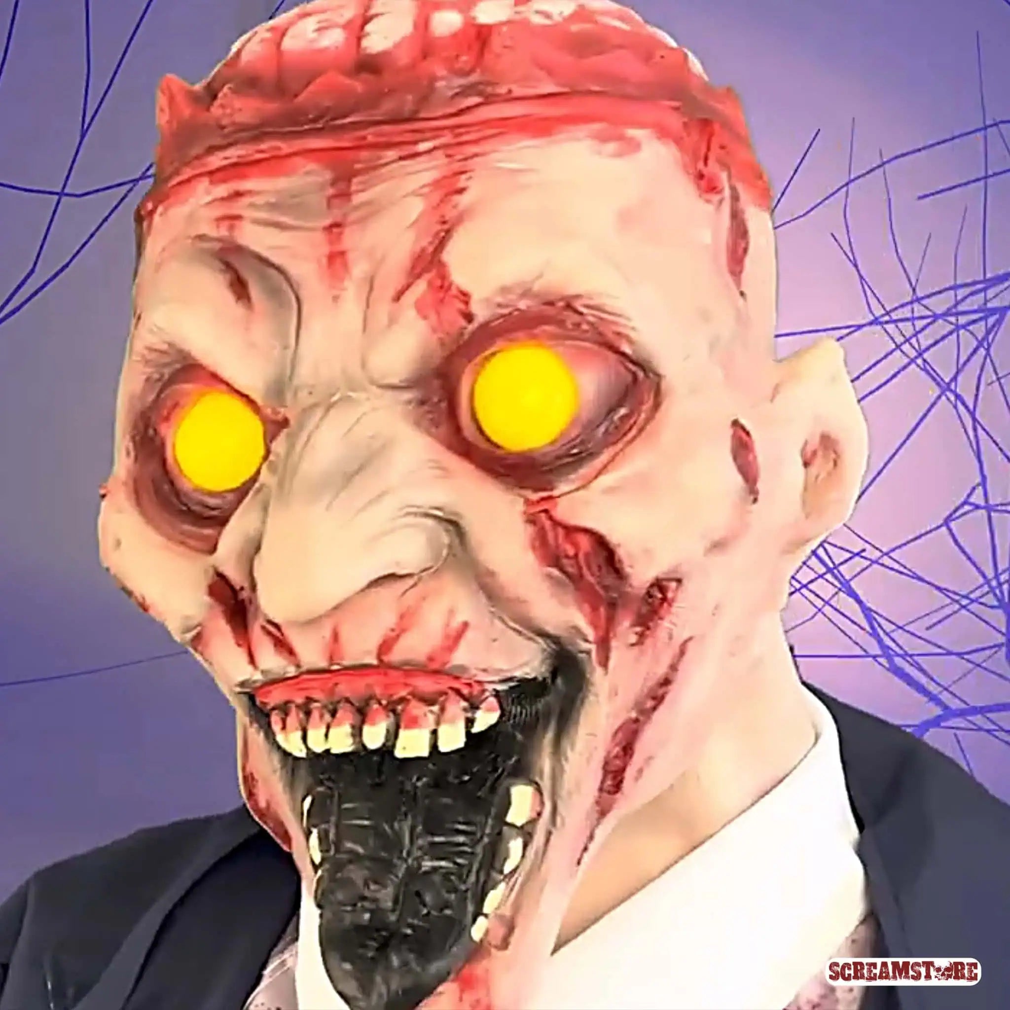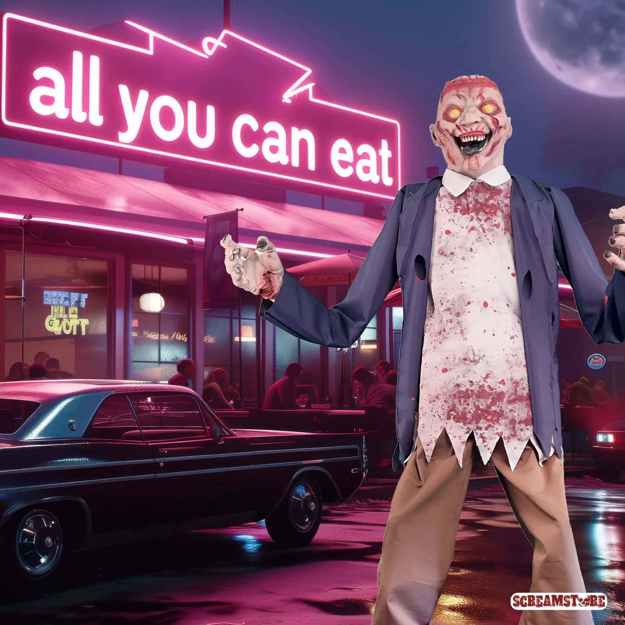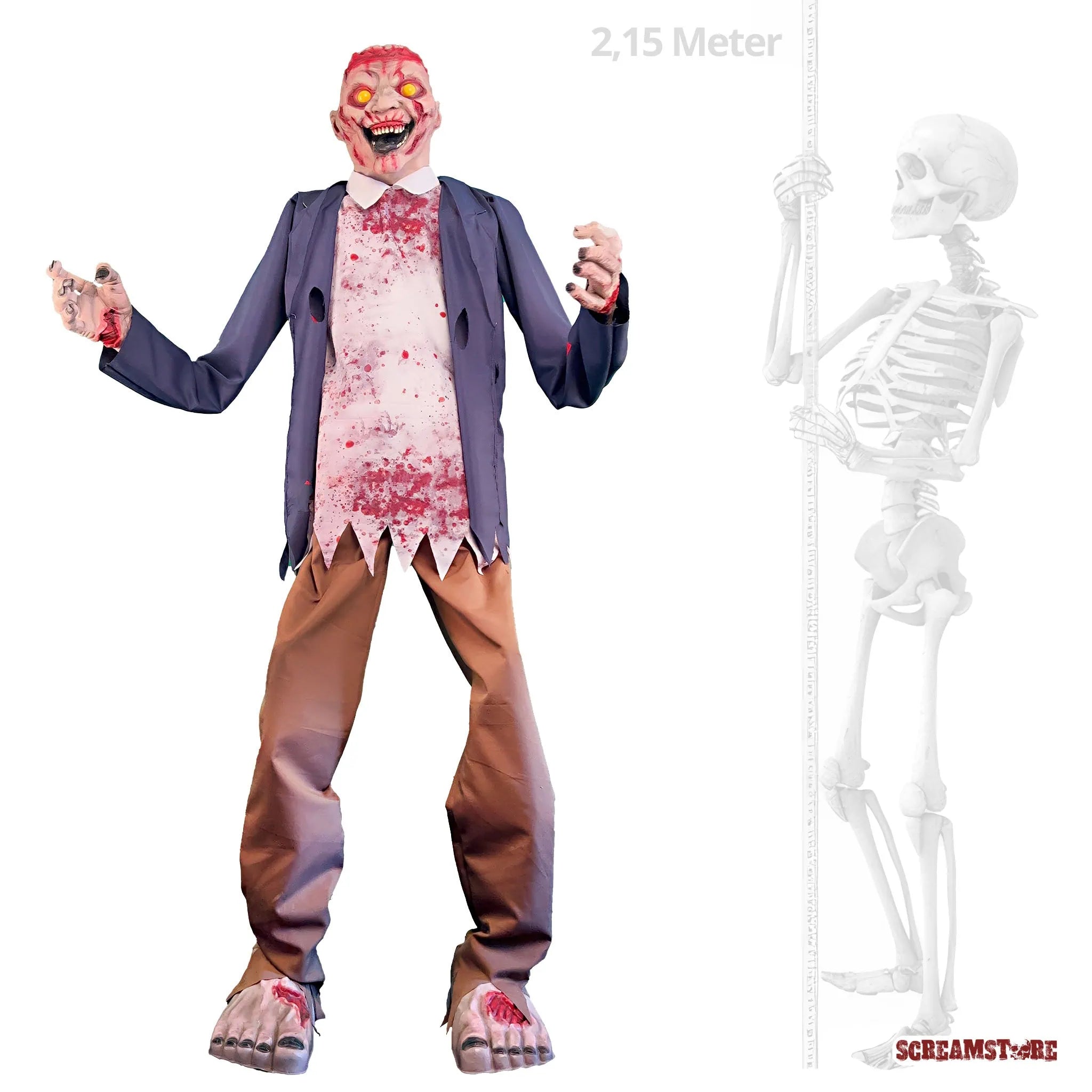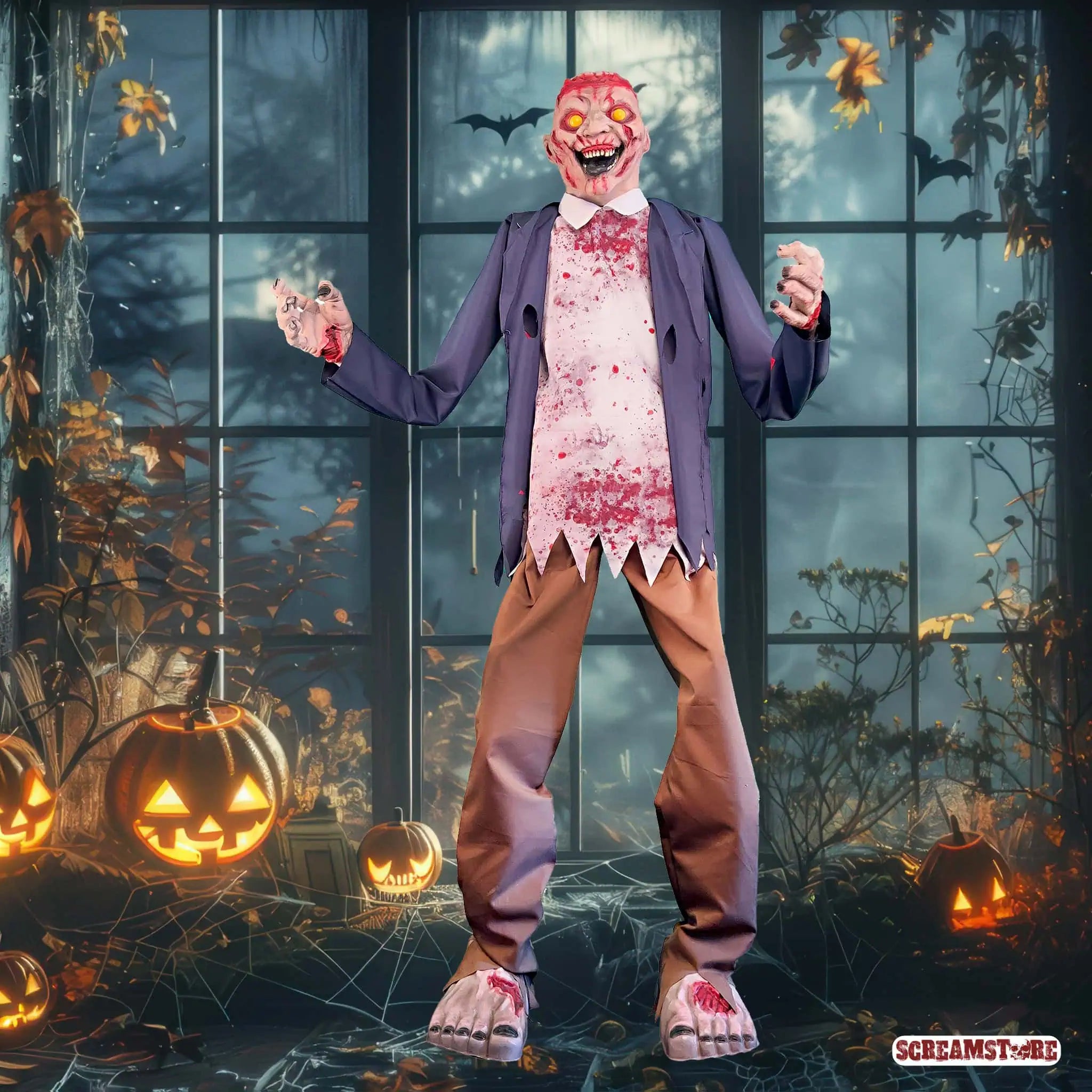 Wenn der kleine Hunger kommt, wird Joe richtig grimmig. Seit Tagen hat er nichts mehr zwischen die modrigen Rippen bekommen, und jetzt will er nur eins: Gehirn! Kein Snack kann das ersetzen. Also Vorsicht, wo du hintrittst – Joe schlurft hungrig durch die Gassen, und wer ihm zu nahe kommt, könnte plötzlich den Verstand verlieren! Diese gigantische Animatronic ist nichts für schwache Nerven: fies, gruselig und zum Totlachen schräg. Kein Zweifel, Joe wird der unangefochtene Star auf jeder Halloween-Party sein!