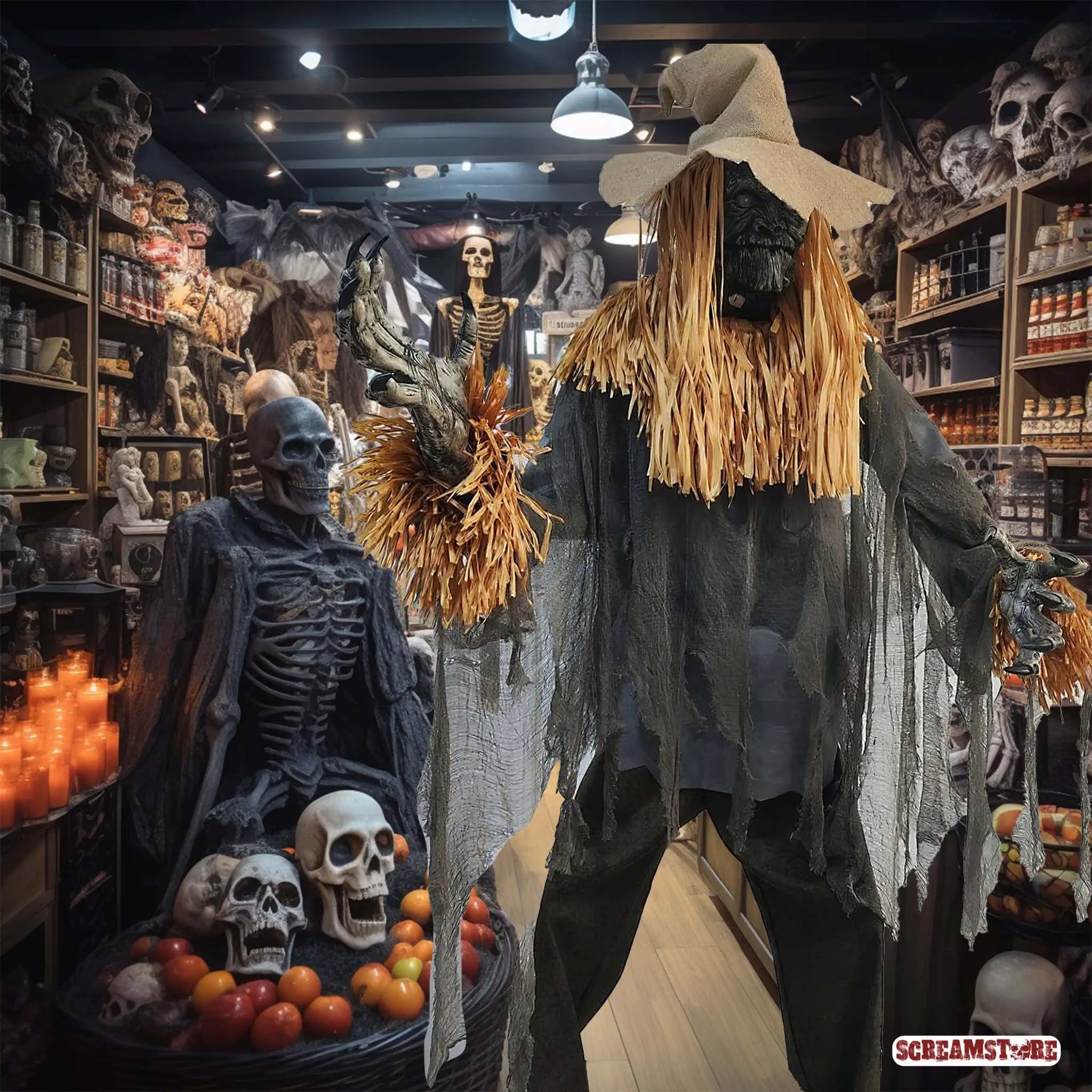 Ein Bett im Kornfeld haben wir zwar nicht gefunden. Dafür aber diese sensationelle Horror Vogelscheuche die uns nach wie vor schlaflose Nächte bereitet. Dieses Monster eignet sich gewiss nicht nur als Krähenschreck. Wer dem unheimlichen Feldherren gegenüber steht der kriegt Schnappatmung und Reiß Aus Laune. Klar dass wir ihn damit geködert haben dass er hier ne Menge Spaß haben wird. Nur was Jim unter Spaß versteht das steht auf einem anderen, blutverschmierten Blatte. Absolute Kult Figur, Direktimport und eine der Gestalten die man nicht auf jeder Horrorfete sehen wird. Viel Spaß mit Jim... und lass Dich nichts aufs Korn nehmen!