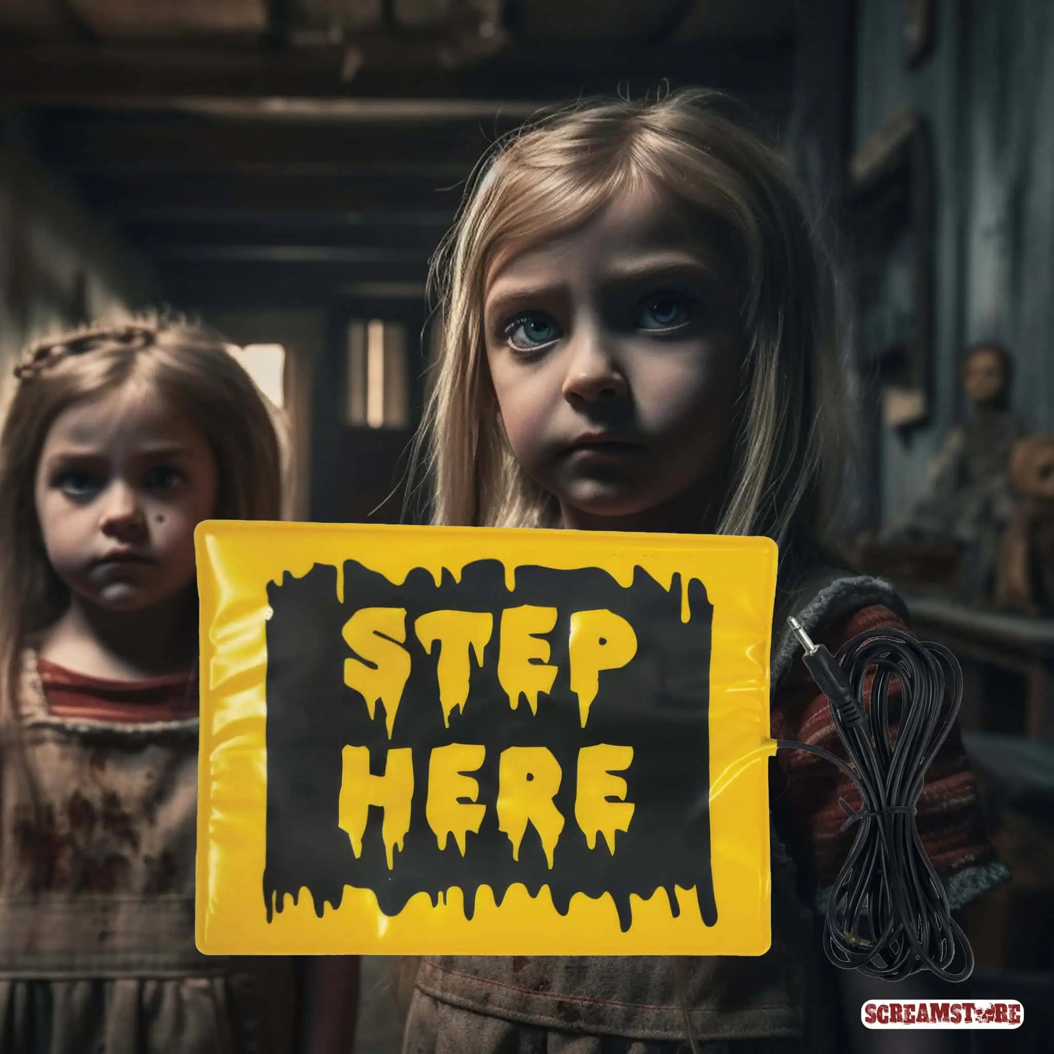 Nur noch ein Schritt... und der Horror startet. Viele unserer Animatronics bieten die Unterstützung der Sensormatte an. Kabel in die Figur, Matte auslegen. Tritt nun ein Unglückseliger auf die Matte startet das Grauen, die Figur wird aktiviert und schockt. Tritt keiner auf die Matte bleibt sie ruhig. Das Prinzip ist generell der Geisterbahn entnommen. Wenn eine Figur ganz gezielt reagieren soll. Natürlich kann man auch auf den Bewegungssensor der Figur setzten. Viele aber wünschten sich dass wir auch die Matte anbieten. Hier ist sie...