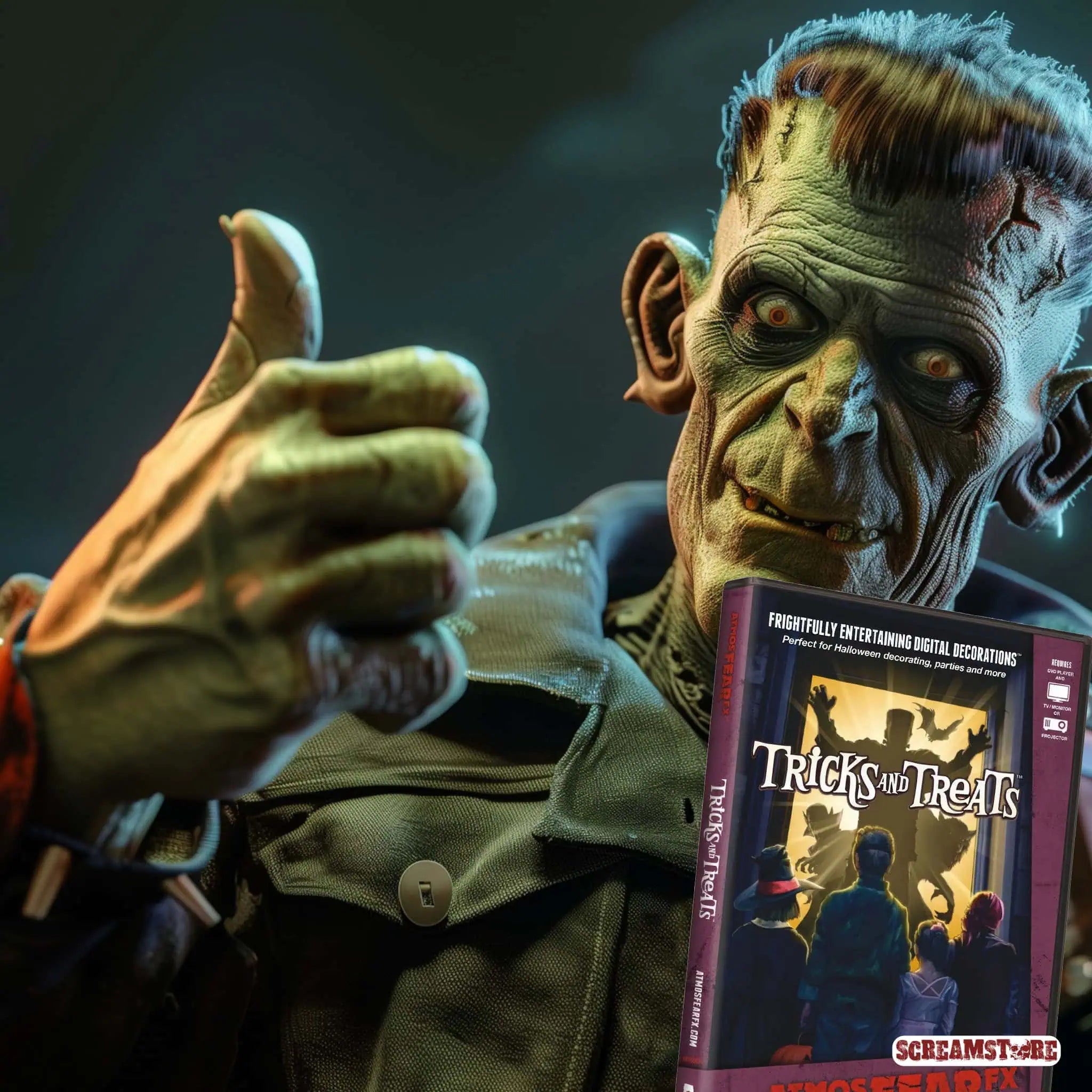 Begeistere Besucher an diesem Halloween mit der Tricks and Treats-Dekorationskollektion , einer Sammlung gruseliger und doch familienfreundlicher Dekorationen mit Silhouetten klassischer Monster. Frankenstein, Dracula und der Werwolf werden die Menge begeistern, da sie in einer großen Auswahl an lustigen Beleuchtungsoptionen wie Kerzen, Blitzen, Scheinwerfern oder Stroboskoplichtern präsentiert werden. Tricks and Treats führt eine neue Generation von „Trick or Treat“-Fans in die Magie der Leinwand ein, wenn es auf Fenster oder Wände projiziert wird, oder zaubert etwas Halloween-Zauber auf Deinen Fernseher/Monitor.