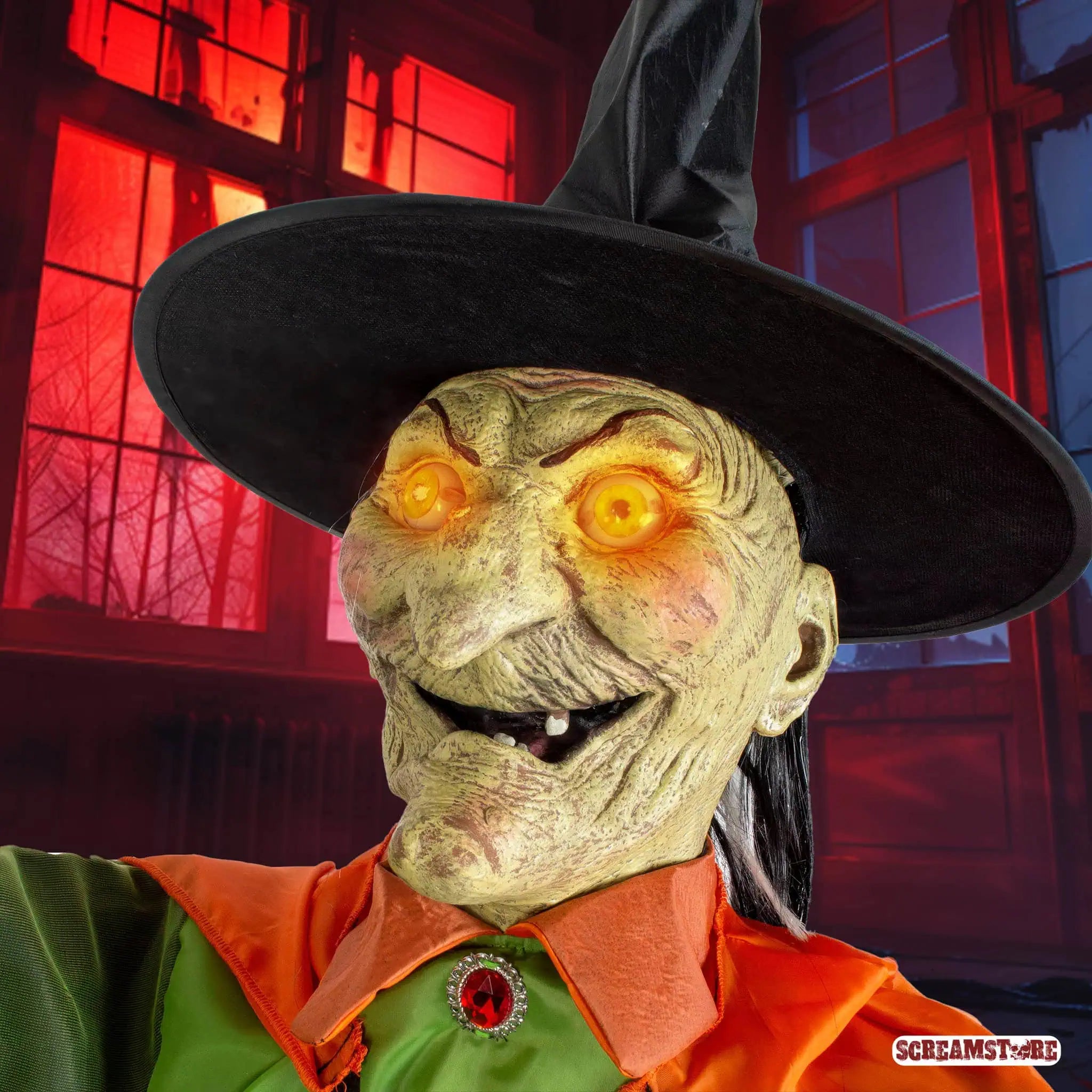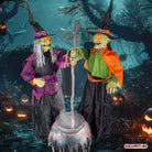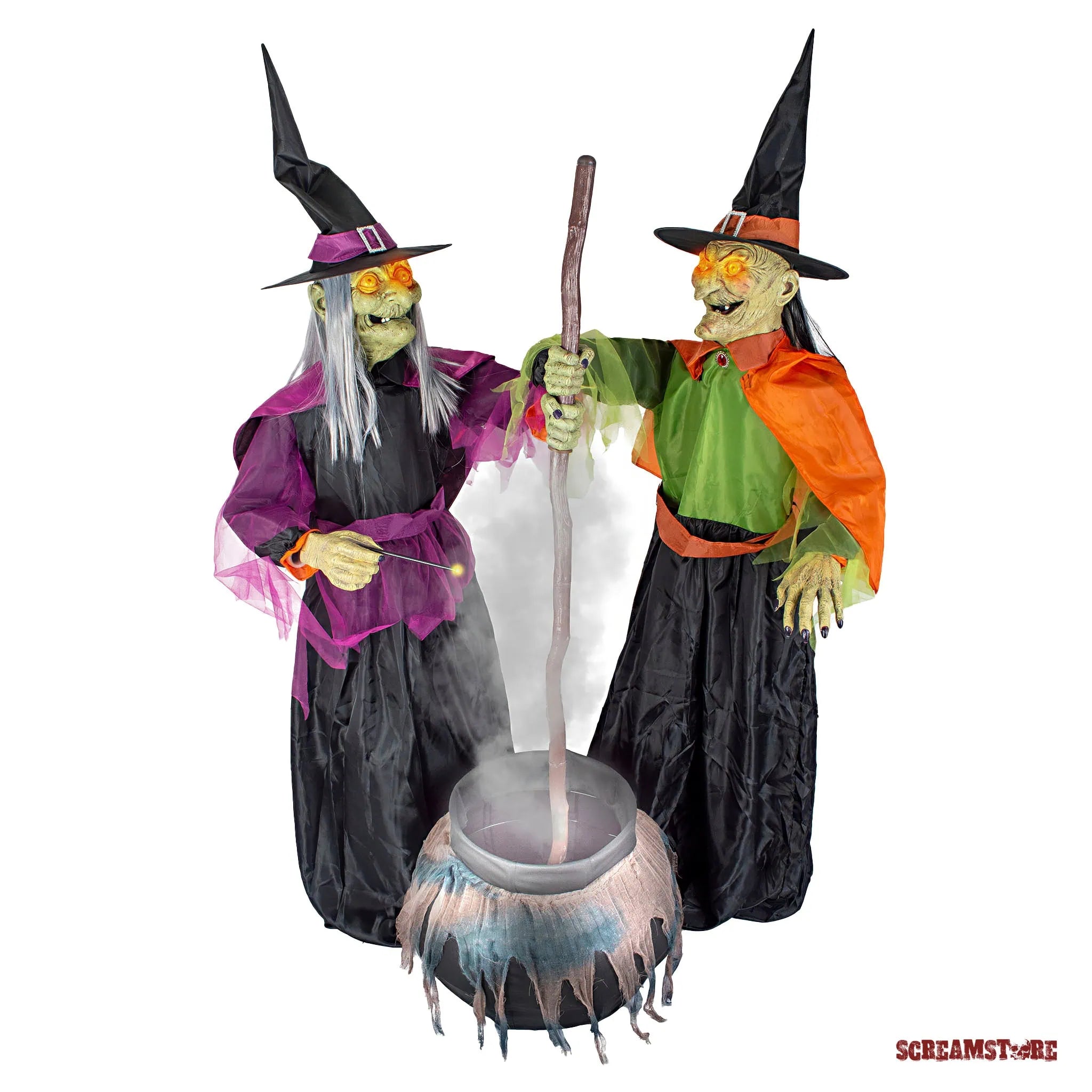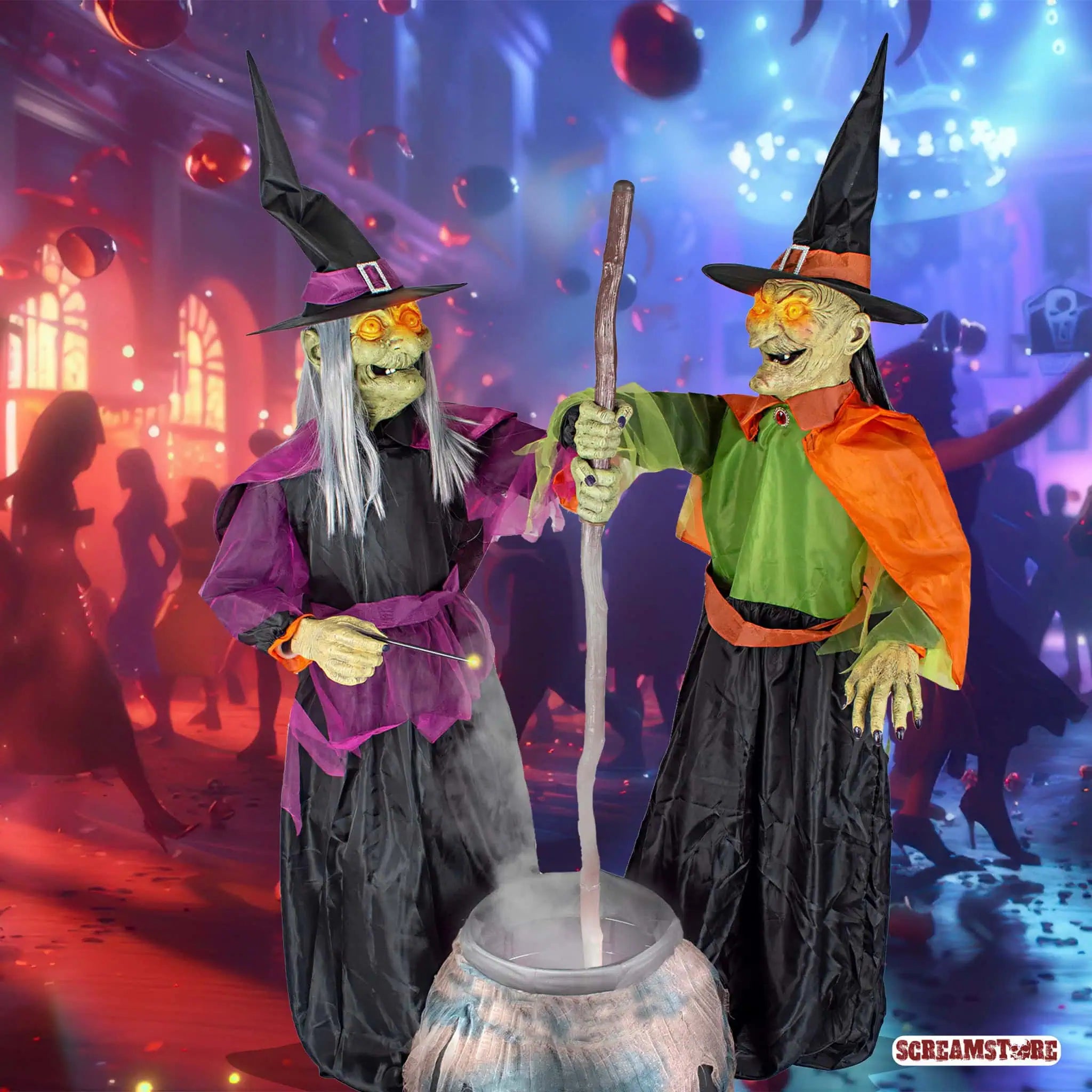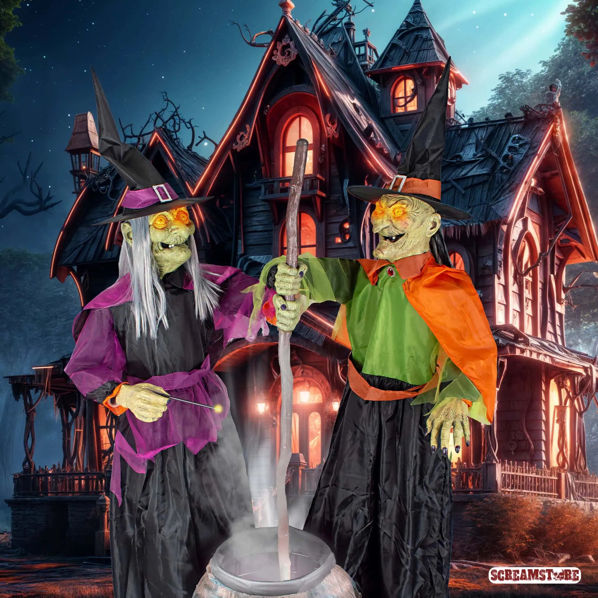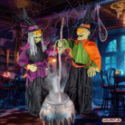 Doppelt kocht besser! Hänsel war endlich moppelig genug, und jetzt gibt’s Eintopf. Hazel und Betty sind voll in ihrem Element – rührend und heftig am Hexenkessel. Gretel findet das Ganze weniger lustig, schließlich war's ihr Bruder, und sie ist auch Vegetarier. Aber hey, man kann es nicht allen recht machen! Wir leben ja nicht im Märchen, oder? Diese geniale Animatronic mit Doppelbesetzung ist ein Muss für jede Halloween-Party. Die besten Hexen ever – also ran an den Kessel!