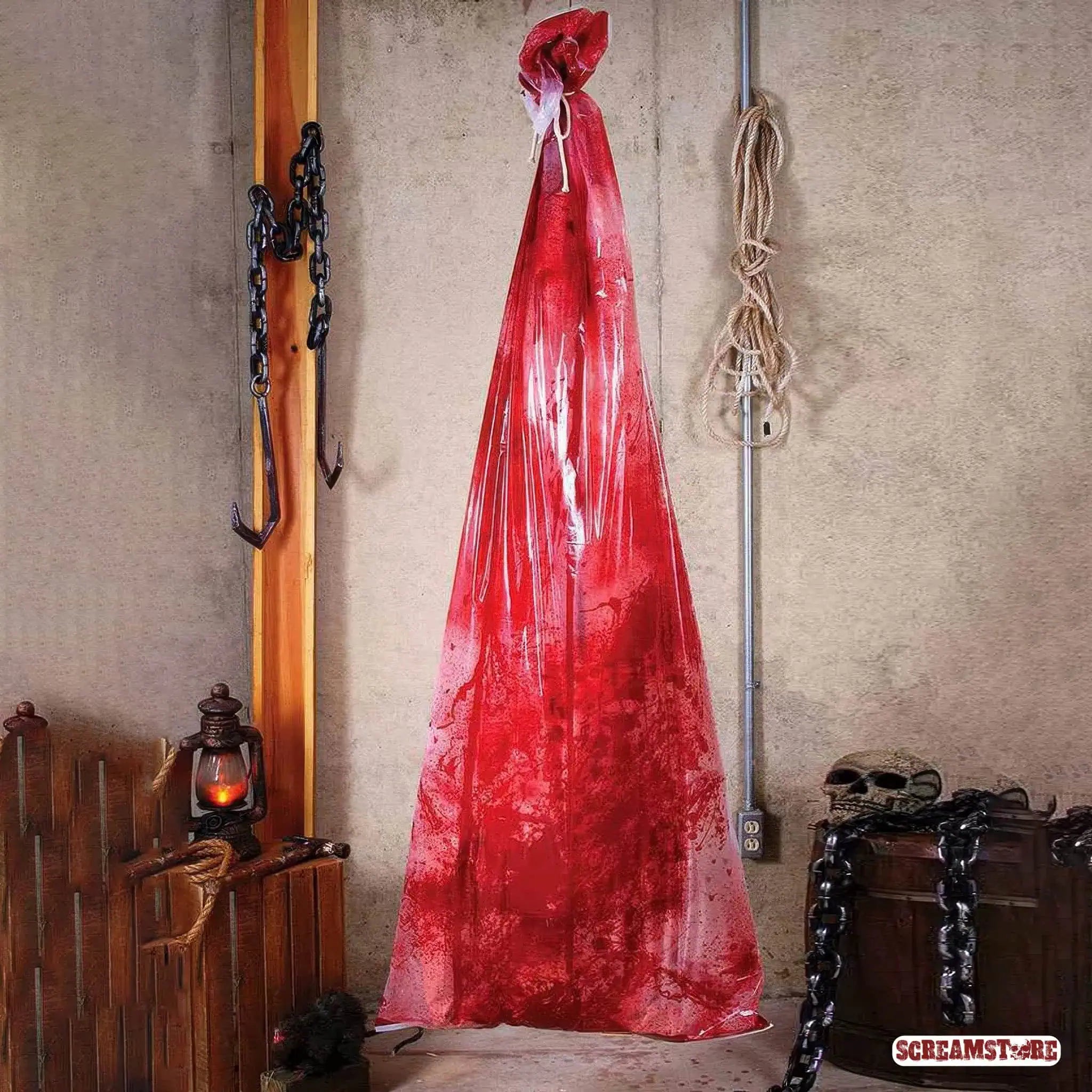 Blutiger Schlachtsack mit Körper