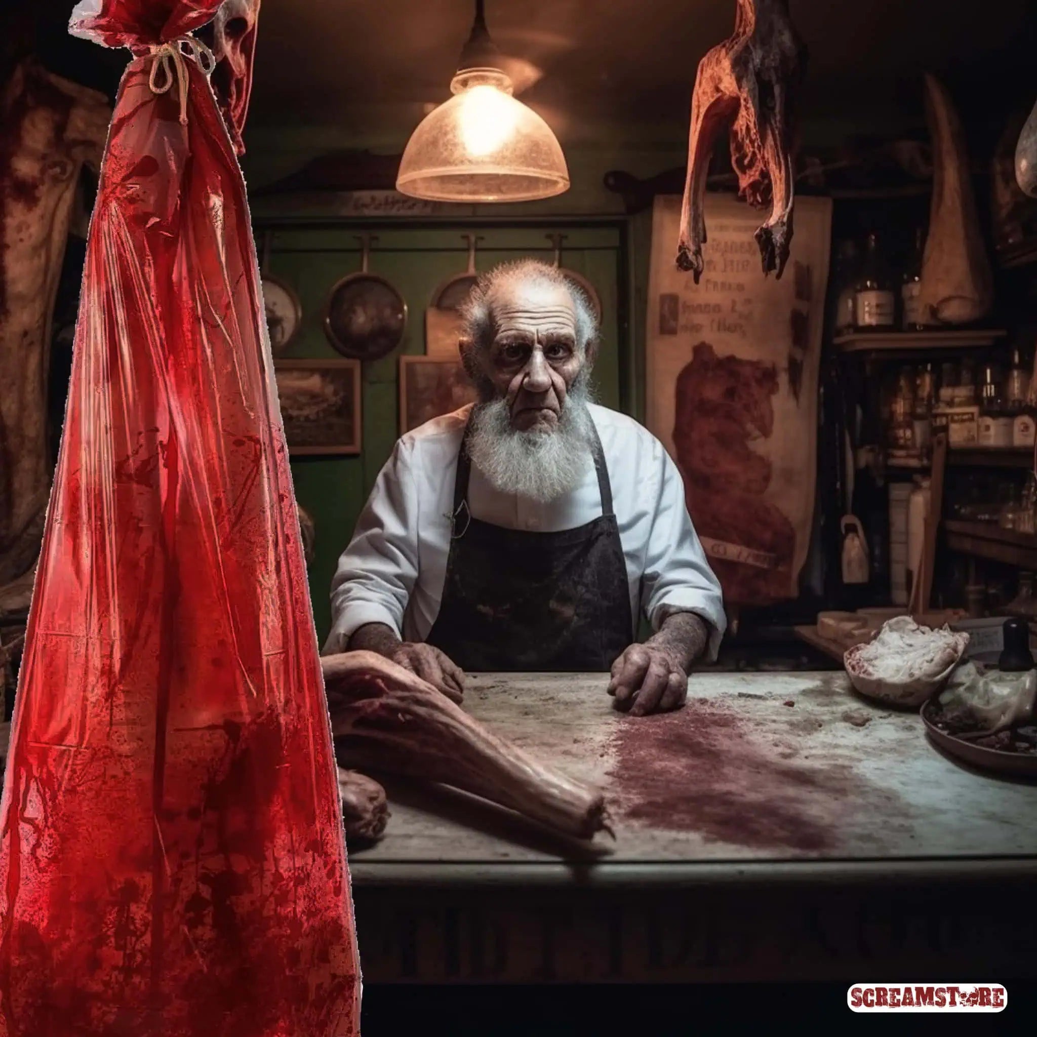 Vergiss die Doggy Bag, hier kommt die Body Bag! Das morbide Must-Have für alle, die ihre Halloween-Party in ein echtes Horror-Spektakel verwandeln wollen. Stelle dir vor, du schlenderst ahnungslos an diesem lebensgroßen, blutbespritzten Sack vorbei und siehst die gruseligen Umrisse eines armen Opfers durchschimmern. Noch nicht genug? Lass unsere Leichenfüße (exklusiv bei uns) oben herausragen oder bohre ein Loch unten rein, damit ein blutverschmierter Fuß raushängt (auch bei uns erhältlich). Komplettiere das Grauen mit einer Blutlache am Boden und lege einen unserer Köpfe oder Finger hinein (alles bei uns im Sortiment). Das jagt jedem einen Schauer über den Rücken. Genialer Sack mit 1,5 Meter aufblasbarem Torso. Weit jenseits der Geschmacksgrenze!
