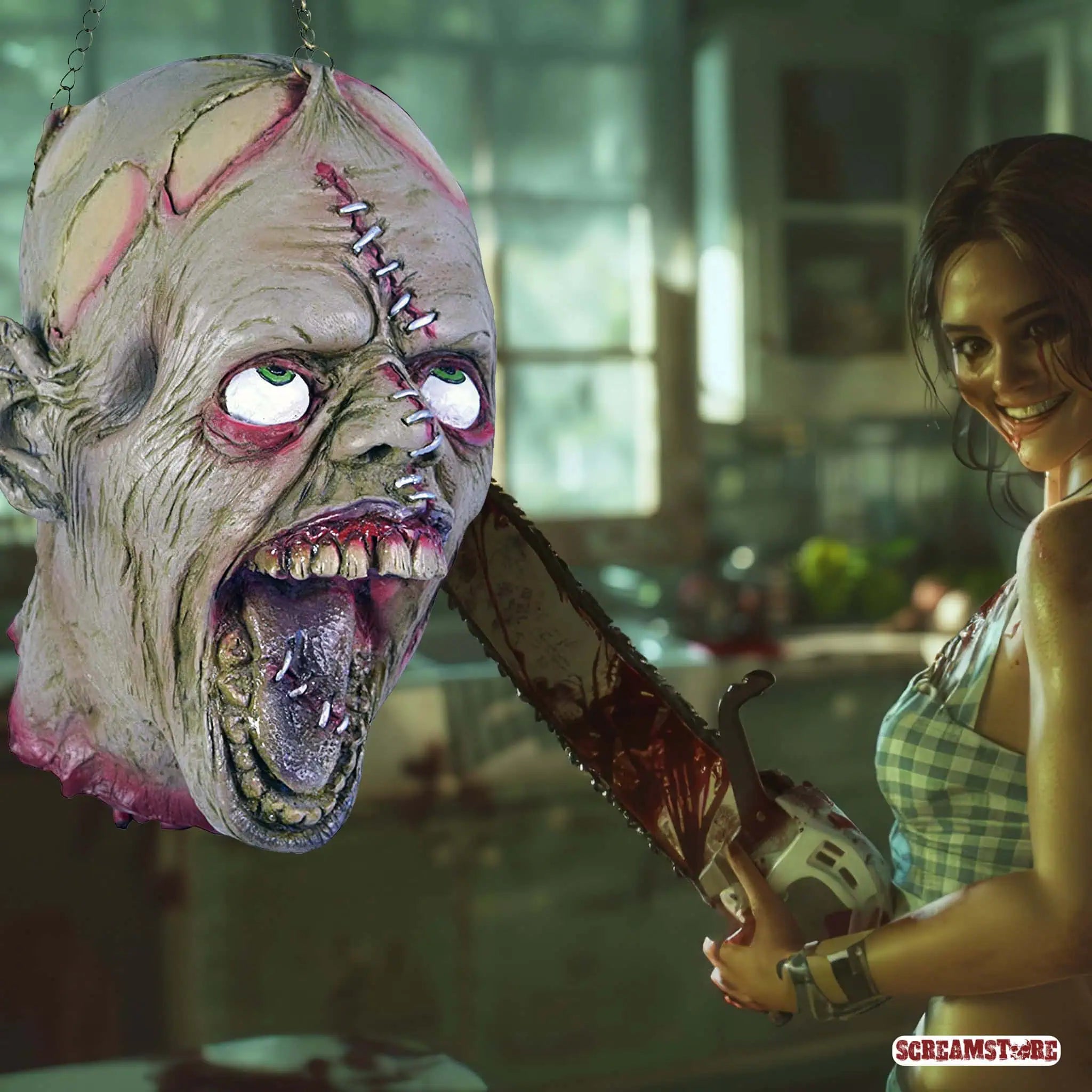 Da läuft man einmal die Abkürzung durch den Park und schon hat man den Salat: Die perverse Brut überfällt einen, foltert, metzelt, meuchelt. Und wacht man auf, ist man einen Kopf kürzer und dazu noch tot. Gut, dass ein Astralkörper keinen Bedarf mehr an irdischem Schnickschnack hat. Denn diesen Kopf will kein Hals mehr durch die Gegen tragen! Sehr cooler Schädel mit schönen Details. Durch die Kette auch super als Hängedeko zu verwenden. Die Extraportion Splatter auf die Deine Gäste voller Furcht gewartet haben.