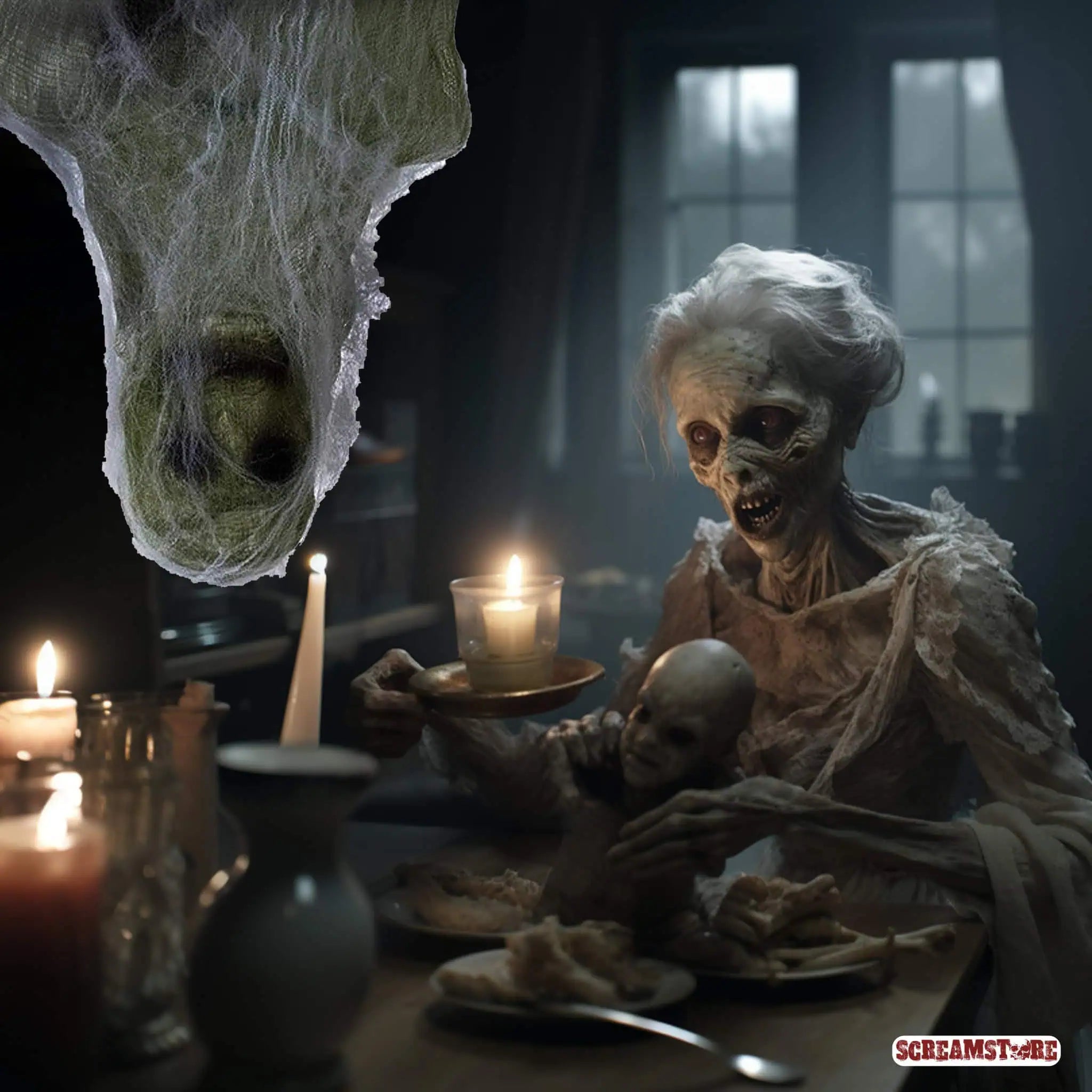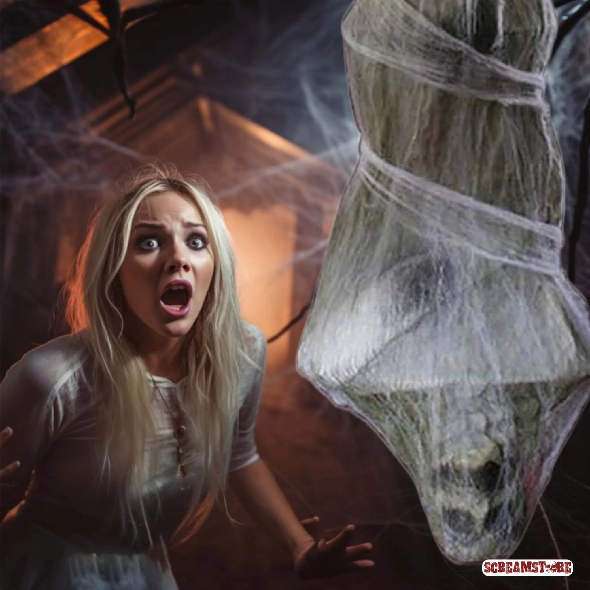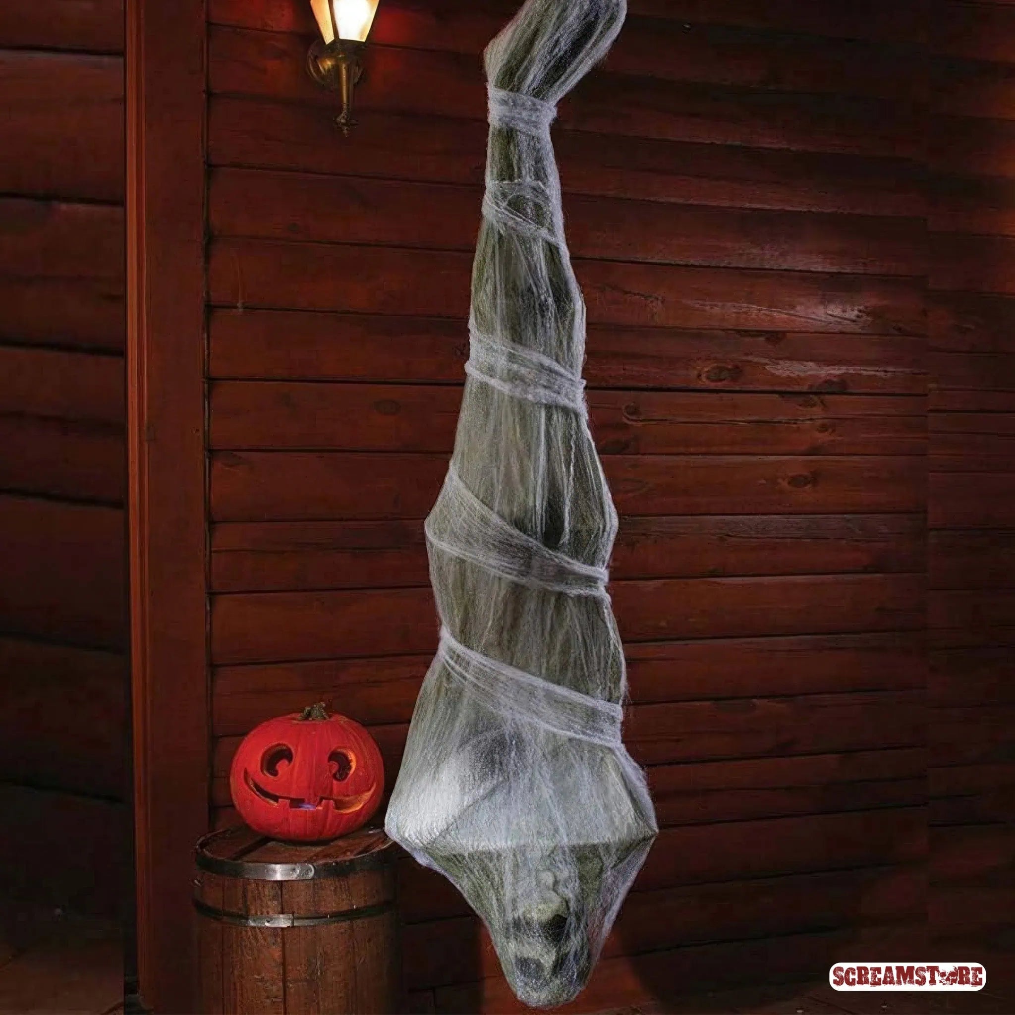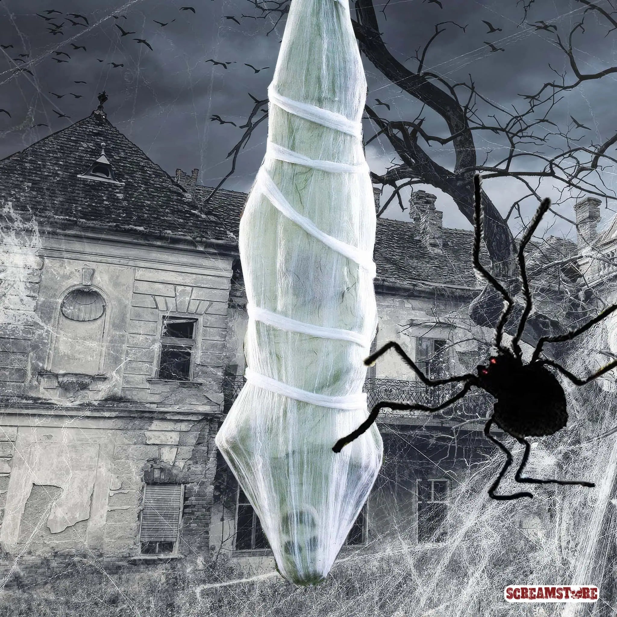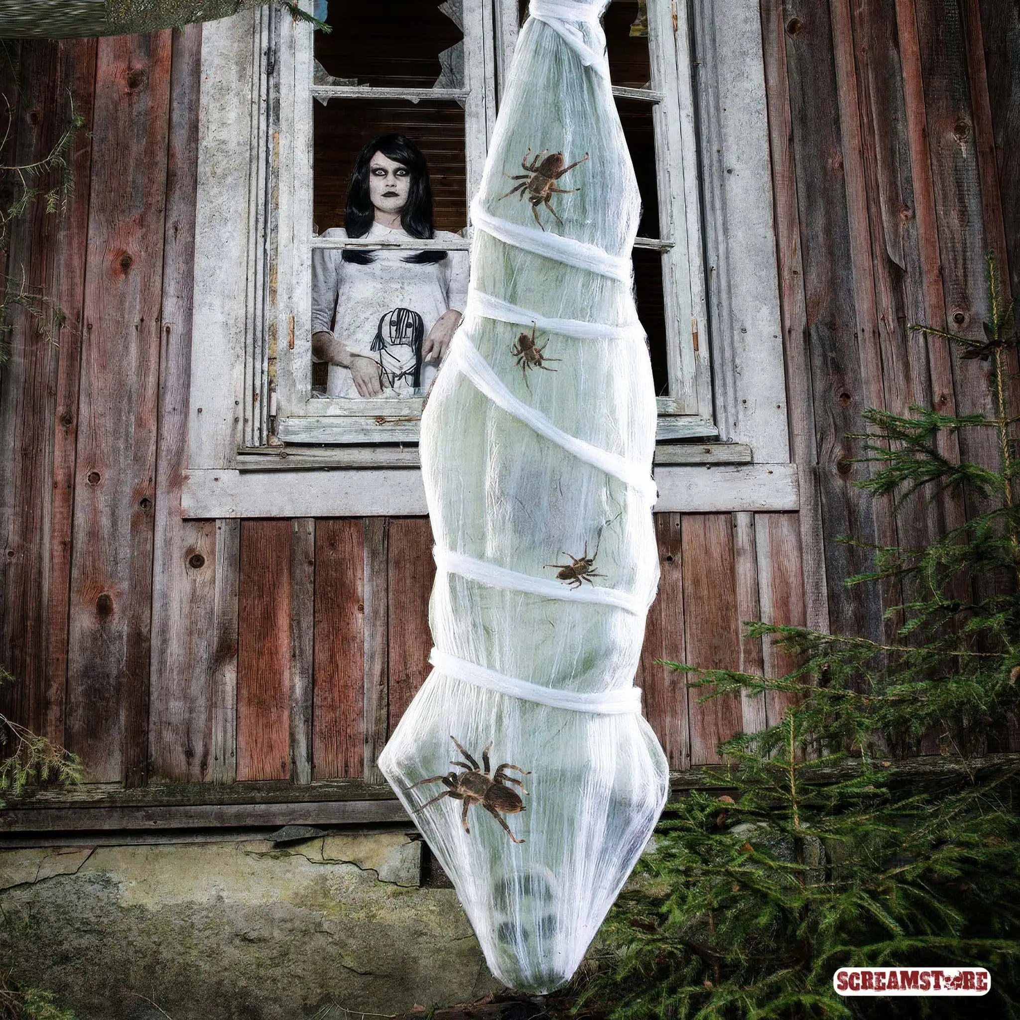 Erwischt... es ist wieder Spinnenzeit. Und allüberall weben die hungrigen Krabbler fleißig um die Wette. Beute ist ja leicht gefangen. Eine große Menge an Smartphone Wichteln, die nur noch auf den Bildschirm starren statt den Weg zu kontrollieren. Zack, schon hat sich wieder ein Dödel verfangen und mutiert binnen Sekunden zur Abendmahlzeit. Und so eingewickelt kann man nicht mal mehr wischen auf dem Handy. WTF Eine schaurige lebensgroße Hänge Deko, in Kombination mit Spinnen und noch mehr Spinnweben ein Albtraum nicht nur für Arachnophoben. Kurz: geiler Stoff!