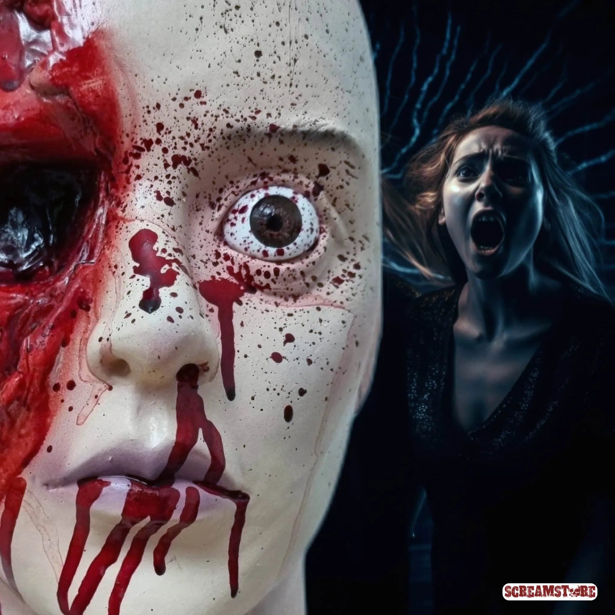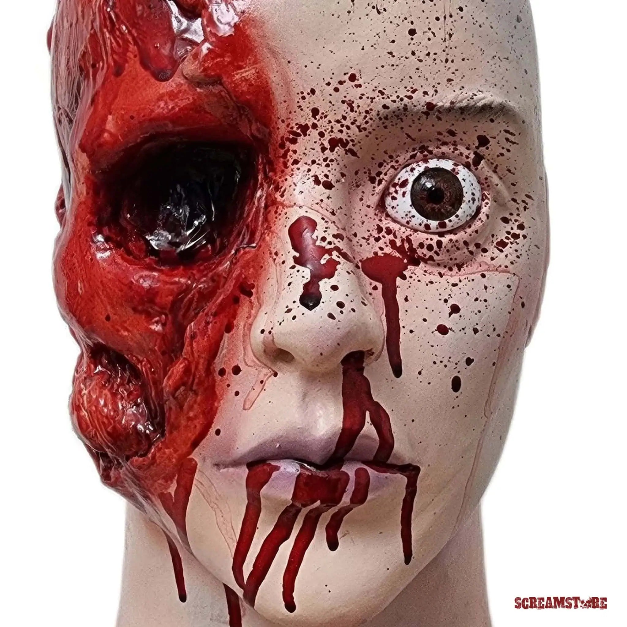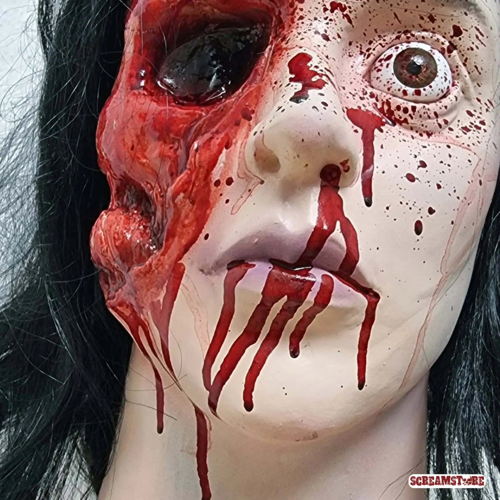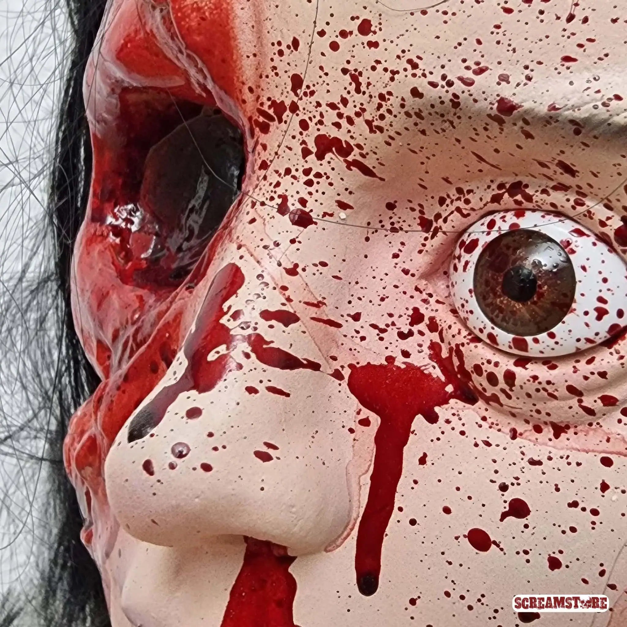 Täuschend echt ist er, der Schädel von Painful Penny. Das geronnene Blut, die Haare strähnig im Gesicht, das offene angstverzerrte Auge. Dieser Schädel aus der Scareware Profi FX Reihe ist ein Meisterstück der Horror Kunst und wir haben lange an ihm gefeilt. Ein echtes Model hielt dafür her, jeder Schädel ist handbemalt, das Auge ist eine hochwertige Speziallinse und das Blut ebenfalls aus dem Film Tricktechnik. Auch die Perücke ist absolut hochwertig und weil wir Köpfchen haben liegt diese lose bei. So kannst Du Carrie entweder mit Haaren oder ohne einsetzen. Mega hochwertige Ware die selbst Theater und Kinoproduktionen verwenden. Vergleichbares kostet sonst das Vielfache. Scareware by Screamstore... das schädelt!