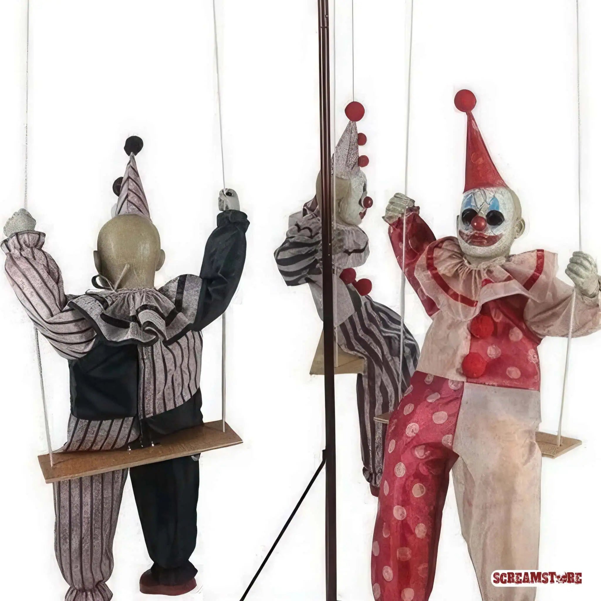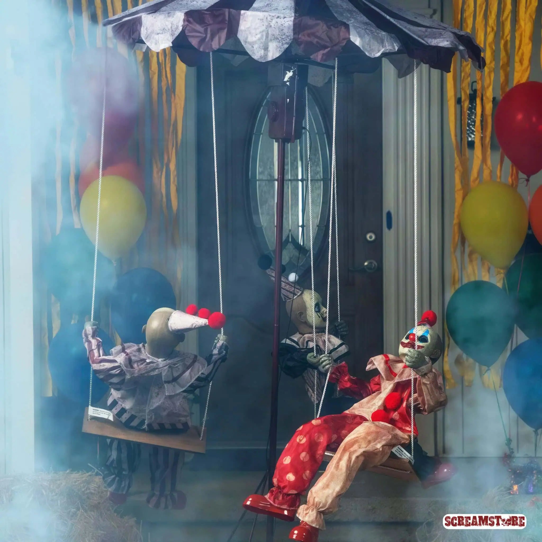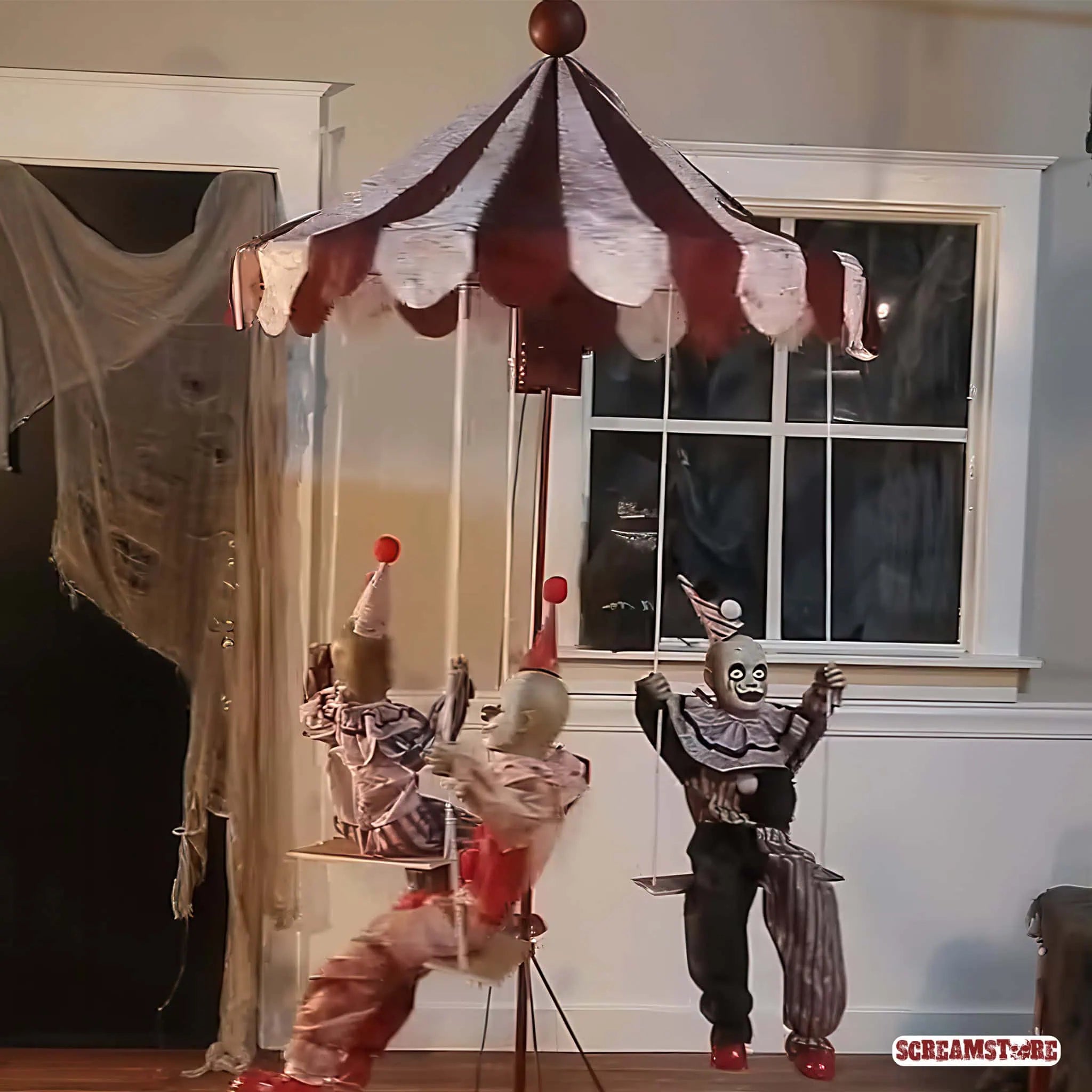 Hereinspaziert in die verwesende Erinnerung deiner schlimmsten Kindheitsträume – dieses Karussell ist kein Fahrgeschäft, sondern ein verdammter Kreisverkehr des Grauens. Drei Clownfiguren, starr wie Leichname und bekleidet mit der Mode der Finsternis, drehen sich in schleppendem Takt zur klirrenden Melodie einer zerfressenen Spieluhr. Keine Freude. Kein Leben. Nur rostiger Wahnsinn in Endlosschleife. Diese Profi-Animatronic aus den USA ist ein Paradebeispiel für Nostalgie-Horror mit morbidem Charme – verstörend echt, verstörend schön. Bewegung, Sound und Lichteffekte auf höchstem Niveau, verpackt in einen Zirkus-Albtraum, der dir die Kindheit austreibt. Wer hier mitfährt, steigt nie wieder aus. Ein Screamstore Highlight mit Albtraumgarantie.
