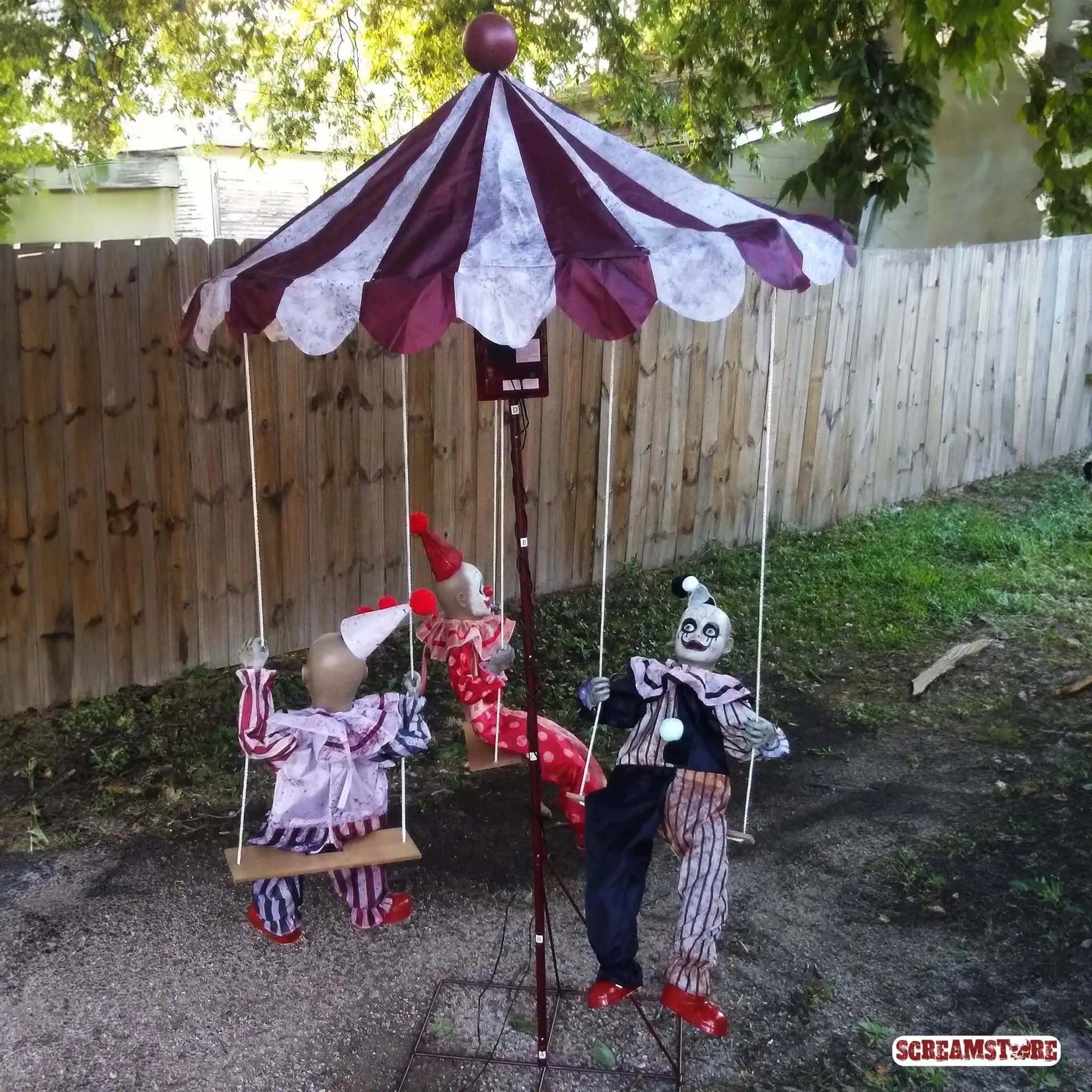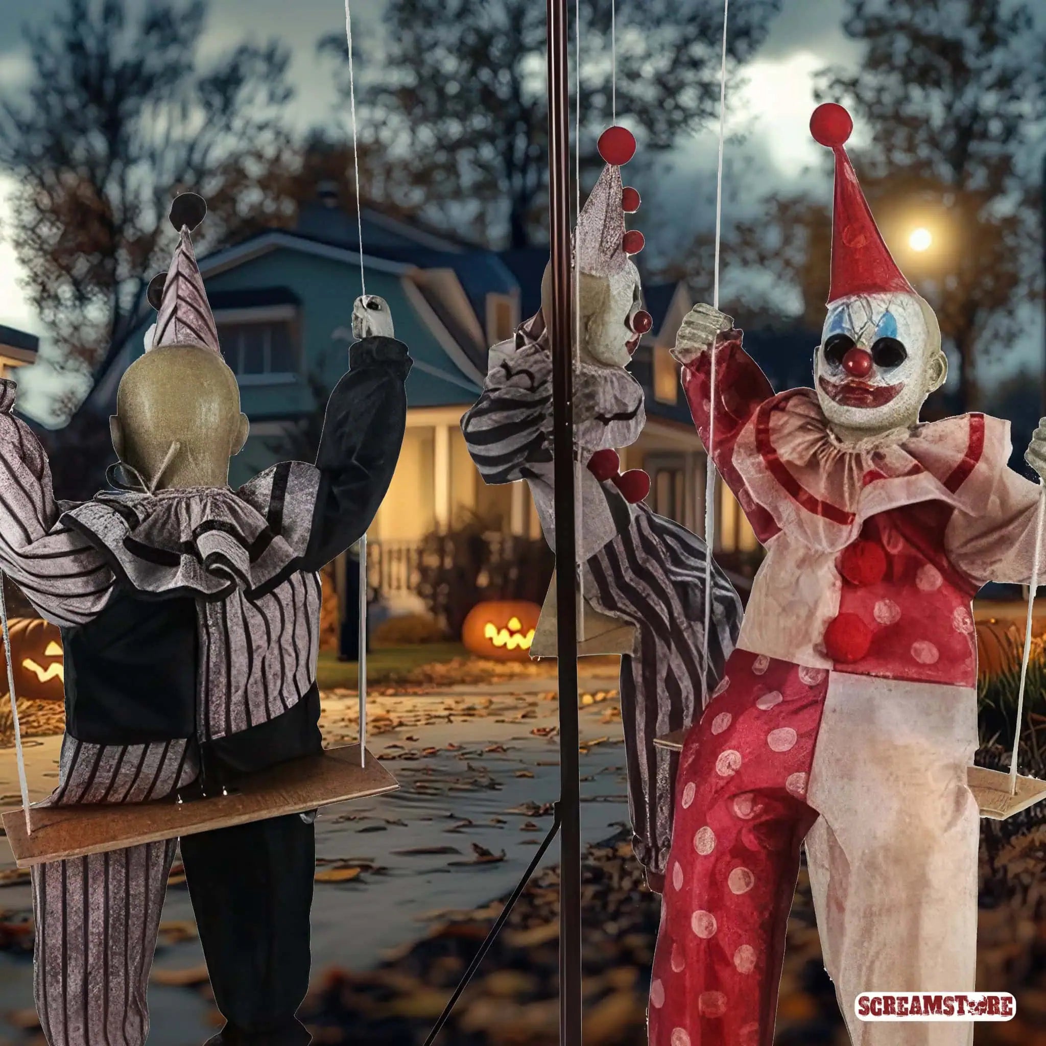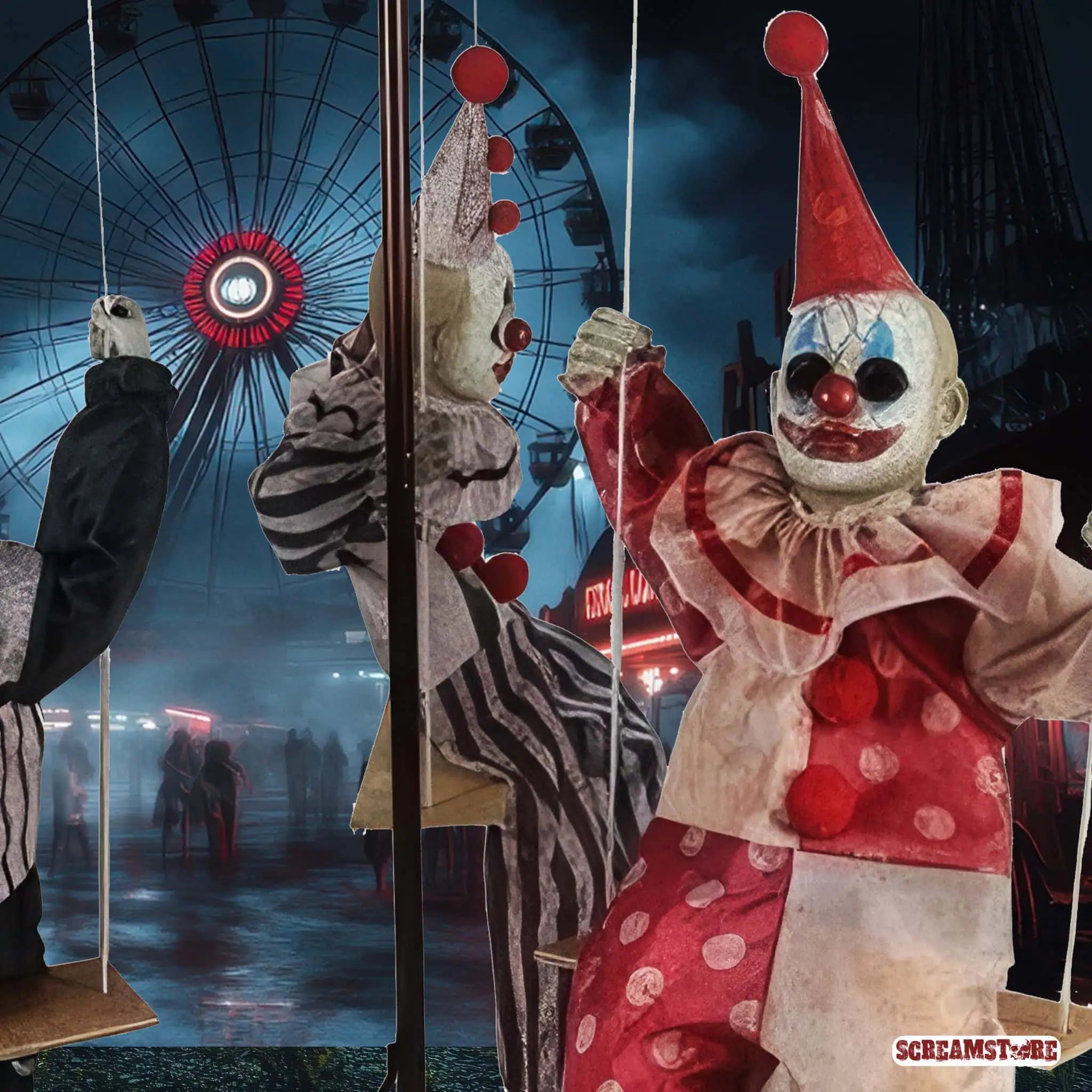 Hereinspaziert in die verwesende Erinnerung deiner schlimmsten Kindheitsträume – dieses Karussell ist kein Fahrgeschäft, sondern ein verdammter Kreisverkehr des Grauens. Drei Clownfiguren, starr wie Leichname und bekleidet mit der Mode der Finsternis, drehen sich in schleppendem Takt zur klirrenden Melodie einer zerfressenen Spieluhr. Keine Freude. Kein Leben. Nur rostiger Wahnsinn in Endlosschleife. Diese Profi-Animatronic aus den USA ist ein Paradebeispiel für Nostalgie-Horror mit morbidem Charme – verstörend echt, verstörend schön. Bewegung, Sound und Lichteffekte auf höchstem Niveau, verpackt in einen Zirkus-Albtraum, der dir die Kindheit austreibt. Wer hier mitfährt, steigt nie wieder aus. Ein Screamstore Highlight mit Albtraumgarantie.