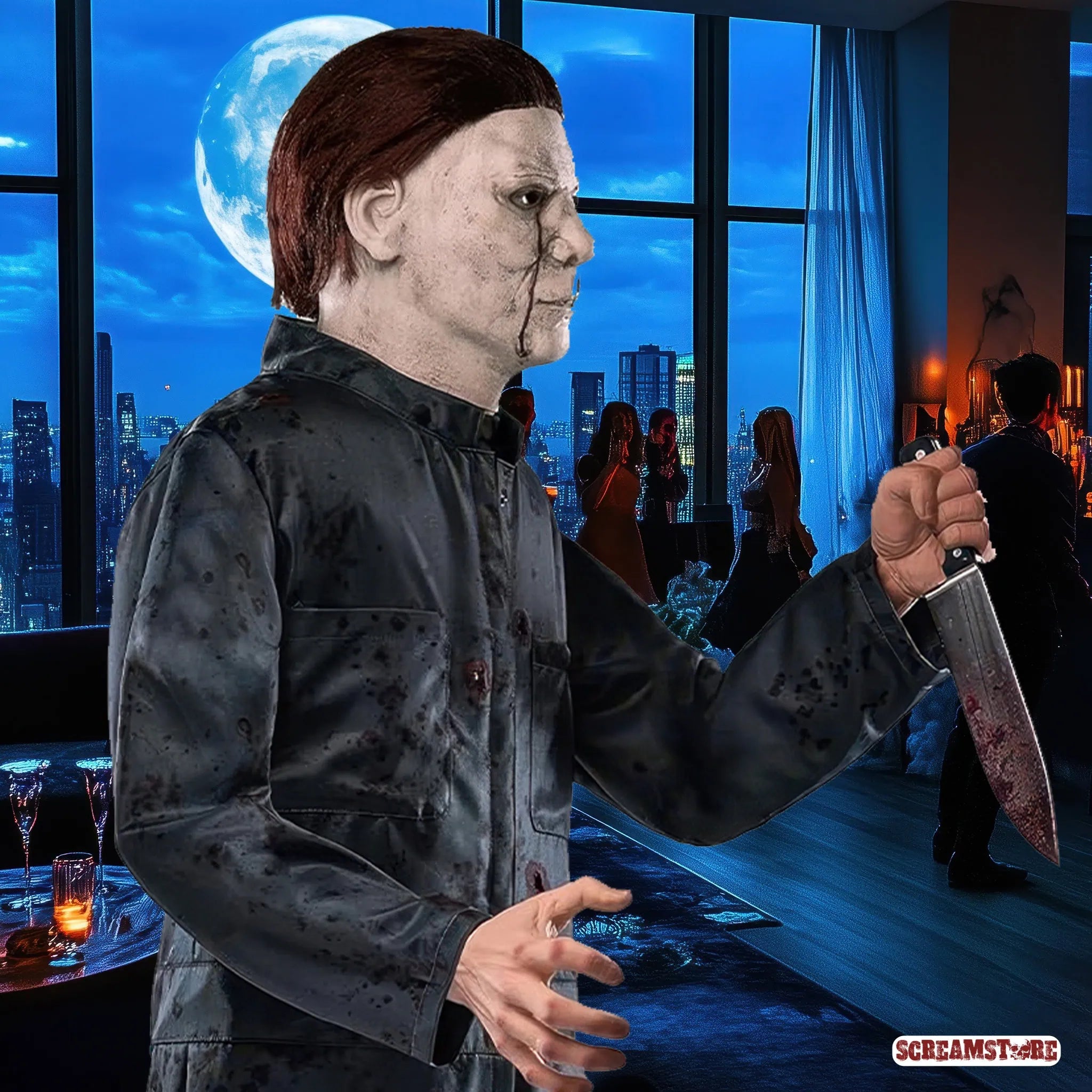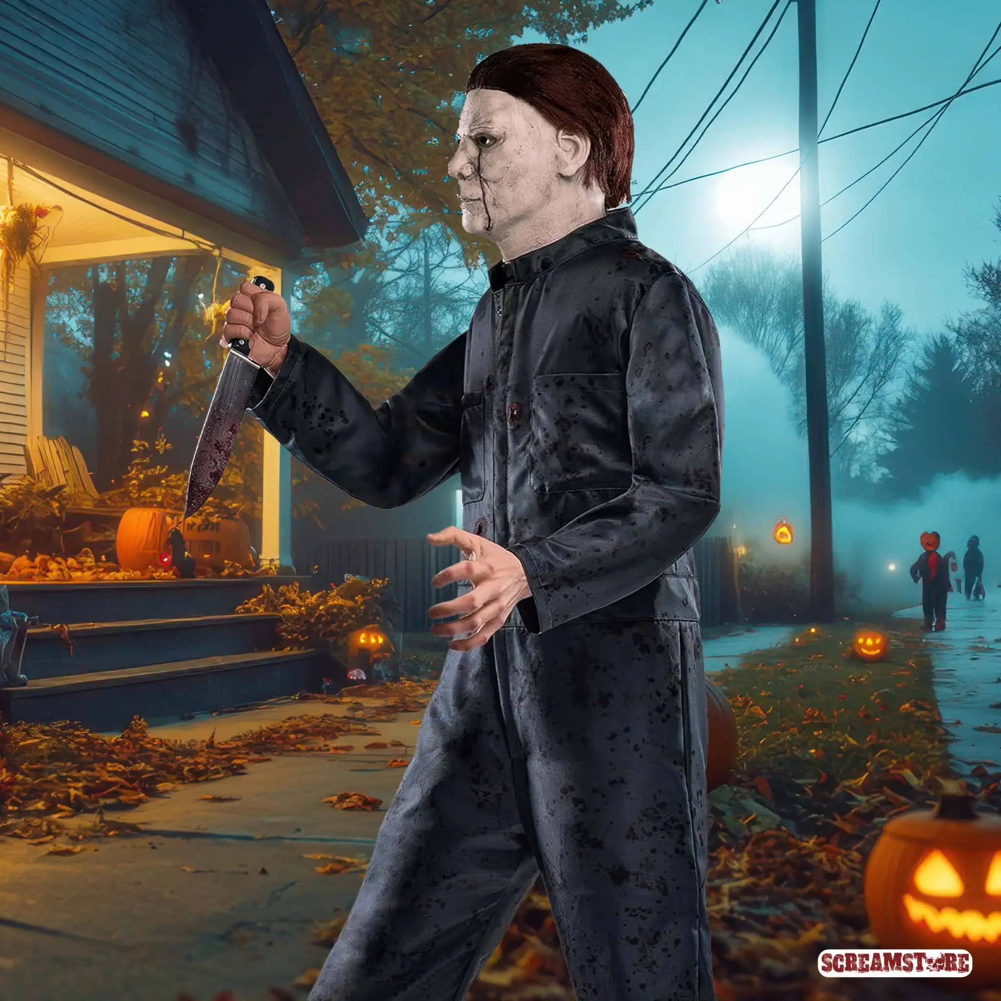 Die Legende lebt… und tötet. Michael Myers ist zurück – in limitierter Stückzahl und mit allem, was dein Nervenkostüm zerreißt. 1,90 Meter purer Wahnsinn in Filmqualität: blutbespritzter Overall, verstörend echte Maske mit roten Tränen, Einschusslöchern und dem starren Blick eines Killers, der nie schläft. Sein Oberkörper dreht sich fließend mit neuester Servotechnik. Der Messerarm hebt sich lautlos. Und irgendwo zwischen Horror-Melodie und schwerem Atem merkst du: Du stehst nicht vor einer Figur – du begegnest einer Legende. Screamstore macht es für ganz kurze Zeit möglich. Ein limitierter Albtraum auf zwei Beinen. Wer zu lange zögert, steht am Ende allein im Dunkeln. Was für eine Chance! Hinweis: Spezialimport mit entsprechend sehr hohen Gebühren, daher der Preis.