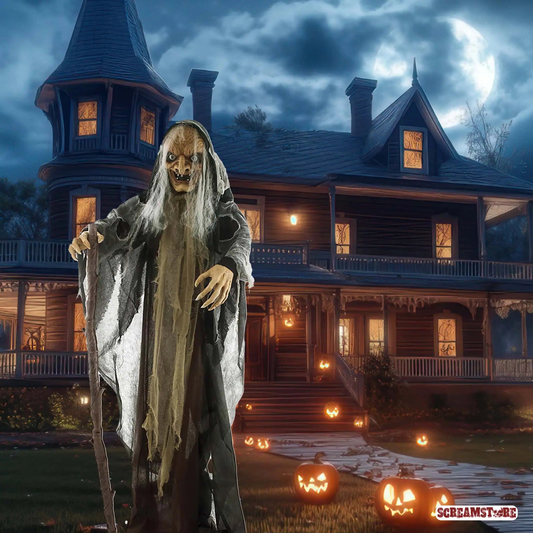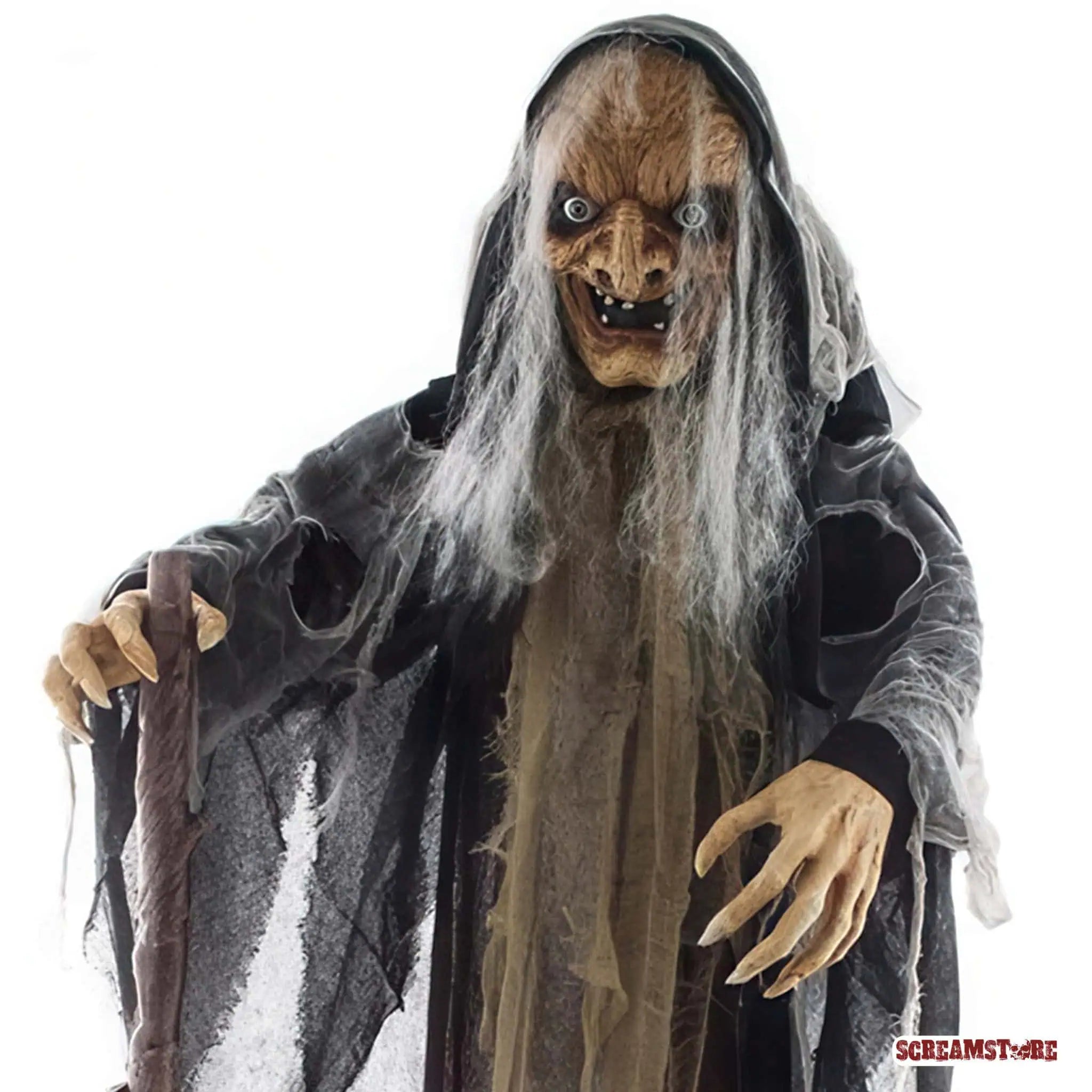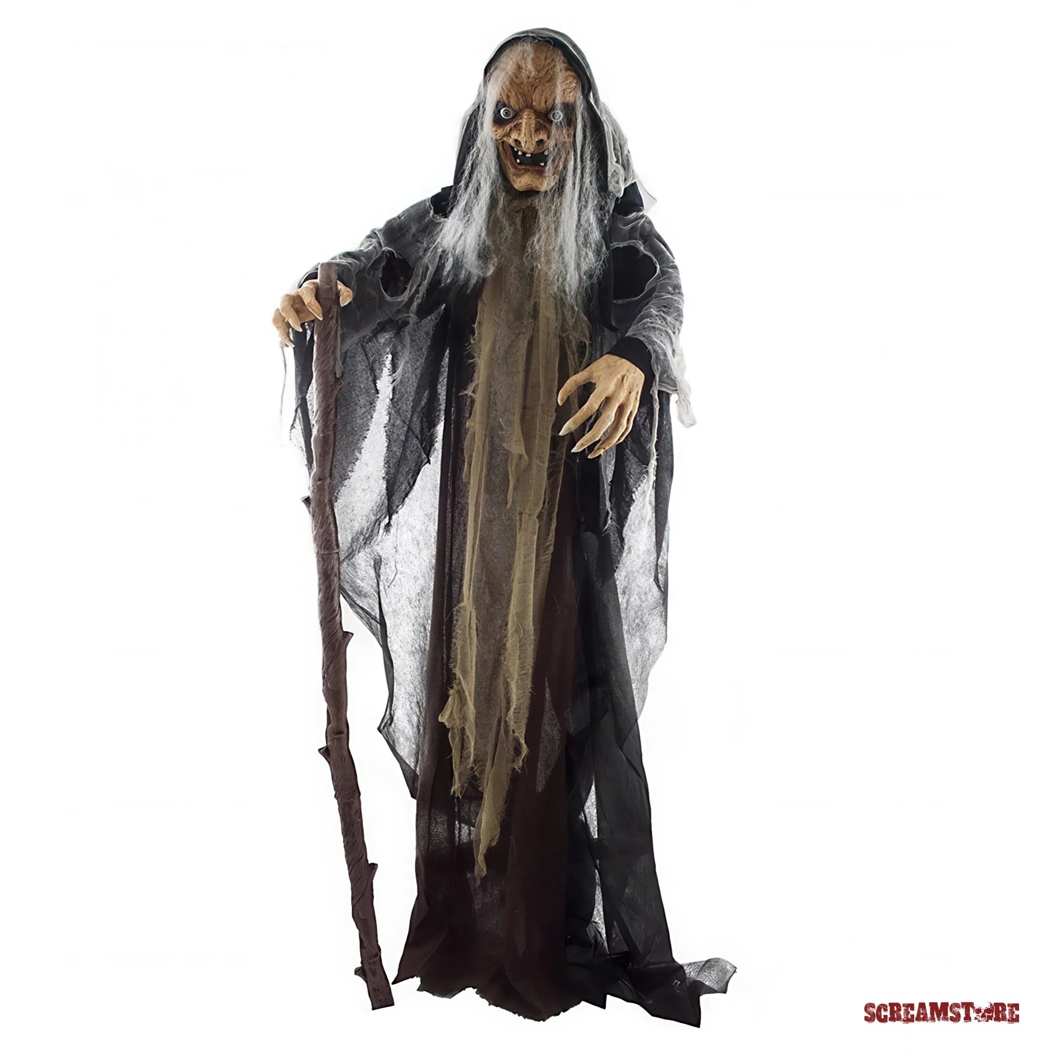 Wanda ist keine Hexe. Sie ist die Hexe. 1,60 Meter pures Verderben – mit zotteligem Haar, zerlumpter Kutte und einem Grinsen, das nach Ofen ruft. Wer sie sieht, denkt kurz an Lebkuchen. Wer sie hört, eher an Leichenschmaus. Ihre fauligen Zähne blitzen im Zwielicht, und irgendwo aus der Ferne hallt das Wimmern von Hänsel und Gretel durch den Kopf. Diese batteriebetriebene Meisterin des Grauens braucht keinen Strom, nur einen dunklen Platz – auf der Veranda, am Fenster oder direkt vor der Haustür. Und dann?