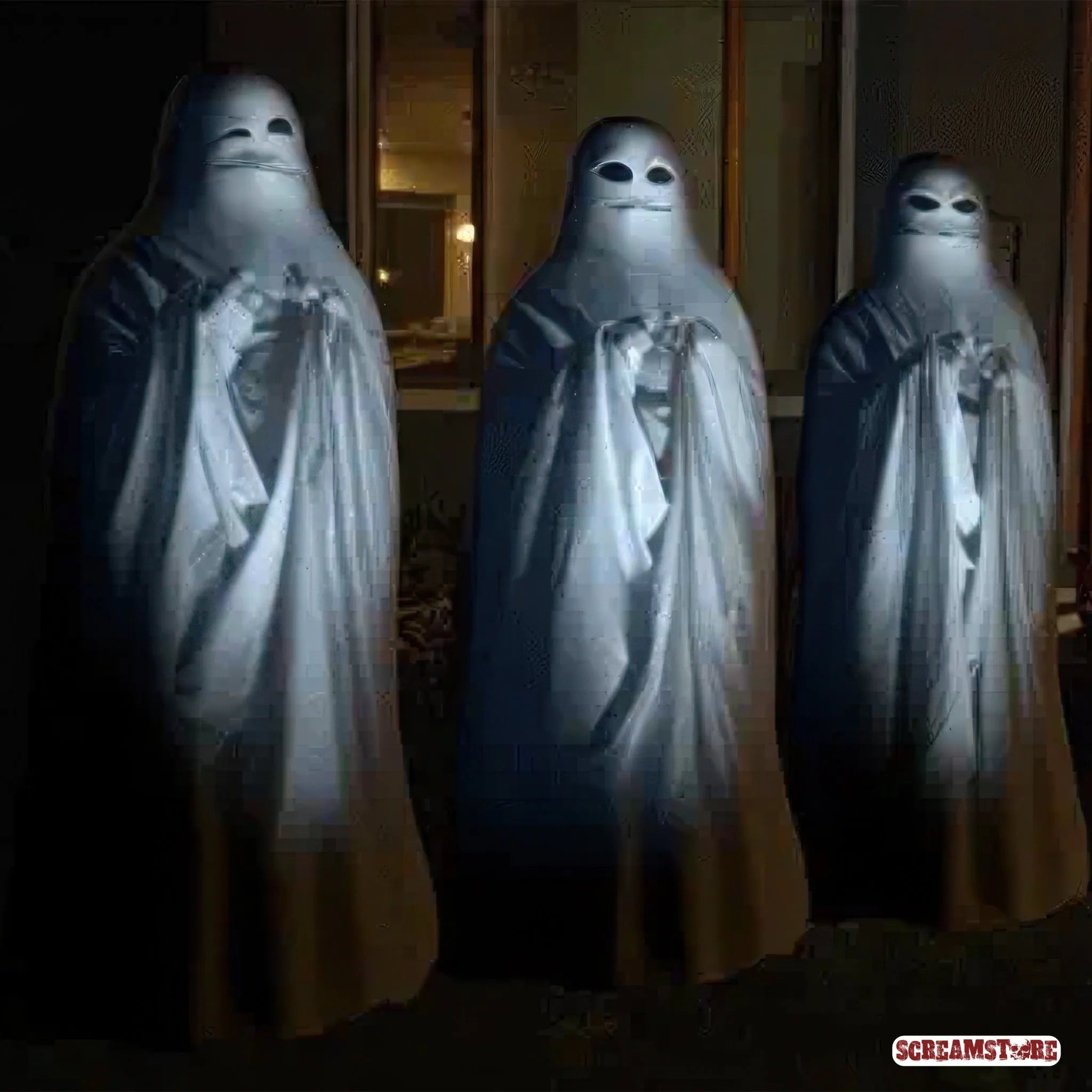Steht regungslos. Und doch macht sie mehr Theater als deine ganze Nachbarschaft. Die 3DFX Form ist keine Puppe. Sie ist Bühne, Besessenheit und Projektionsfläche für alles, was du nie allein in deinem Wohnzimmer sehen willst. Kaum aufgeblasen, wird aus ihr ein vollwertiger Geist, ein kreischender Dämon, ein singender Weihnachtsmann – je nachdem, welchen Albtraum du ihr einspielst. In Kombination mit den Projektionen von AtmosFX und einem Projektor (nicht im Lieferumfang) erwacht sie scheinbar zum Leben: Sie spricht. Sie singt. Sie starrt dich an. Und plötzlich wirkt dein Flur wie ein Filmset aus der Hölle – oder aus einem sehr seltsamen Weihnachtswunderland. Egal ob Halloween oder X-Mas: Diese Figur zieht Blicke an wie ein schwarzes Loch die Hoffnung. Sie steht, sie flimmert, sie lebt – zumindest so lange der Projektor läuft. Keine Deko. Kein Scherz. Ein Portal zwischen Realität und Wahnsinn – und du hast die Fernbedienung in der Hand. Exklusiv bei Eurem AtmosFX Partner Screamstore.