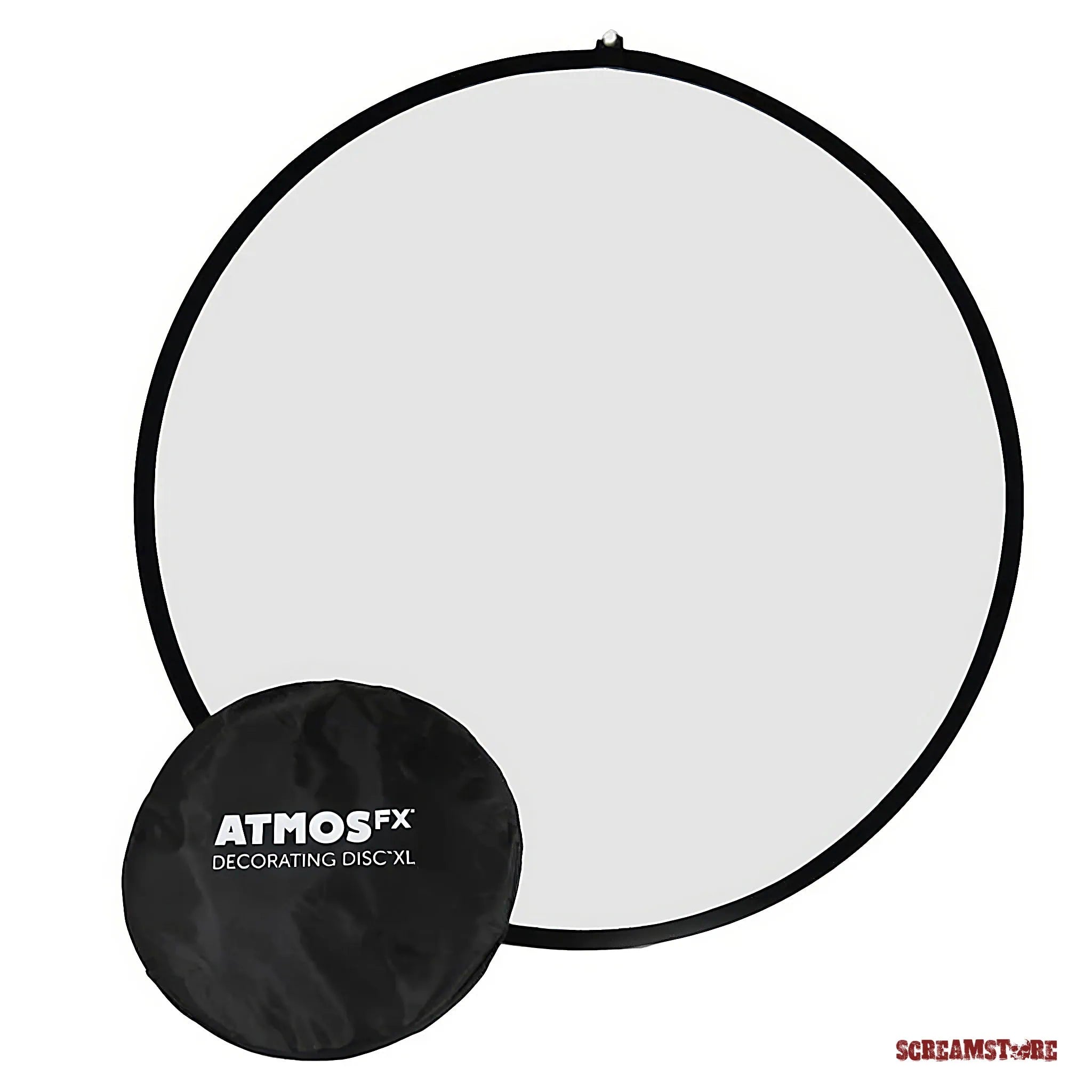 Erstelle dramatische Dekorationen mit der innovativen AtmosFX Decorating Disc XL, einer runden Projektionsfläche mit 1,1 Meter Durchmesser, die perfekt für die runde Projektion optimierte AtmosFX-Dekorationen einfängt. Feiere mit dieser tragbaren Leinwand zahlreiche Feiertage und Anlässe überall – Halloween, Weihnachten, Ostern, Geburtstage und mehr. Die AtmosFX Decorating Disc XL ist leicht und einfach zu verwenden. Sie besteht aus gewebtem Polyester und hält das Bild des Projektors scharf. Mit ihrer eigenen Aufbewahrungstasche kannst du sie bei Nichtgebrauch auf einen Durchmesser von nur 14,5 Zoll zusammenfalten. So bist du immer bereit für das nächste spektakuläre Event! UVP 49,99 Euro - Abverkaufspreis.