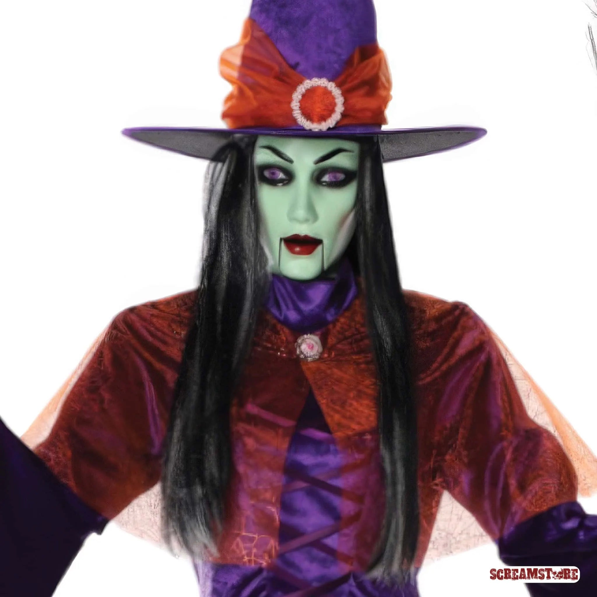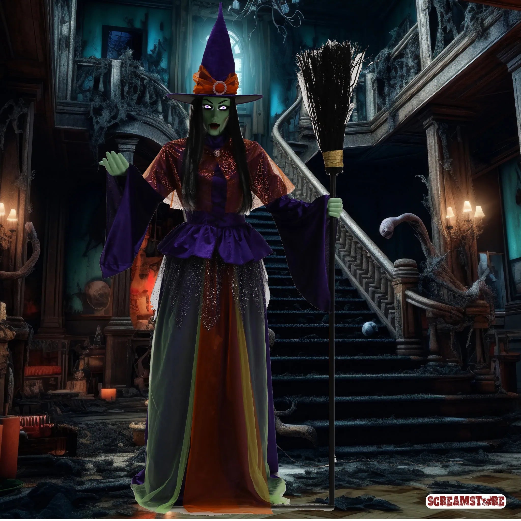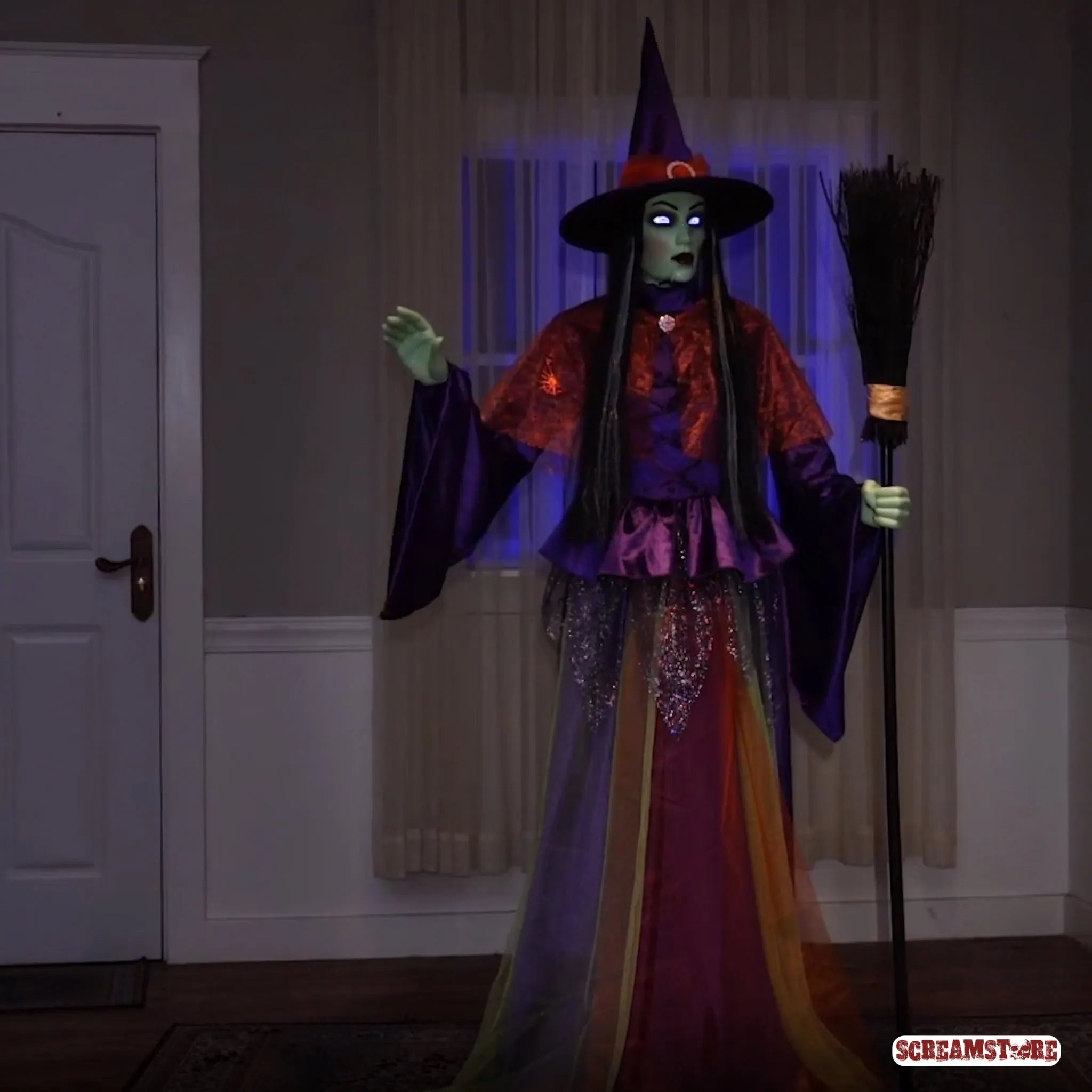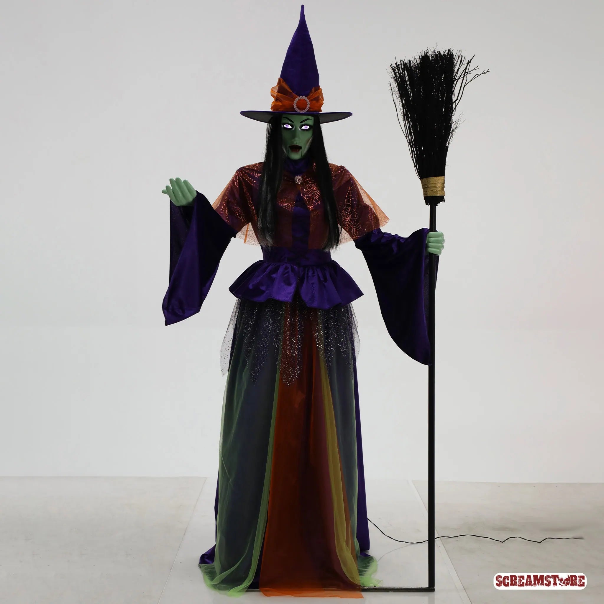 Hex Hex... diese Lady sieht neben unseren uralten Hexen eher betörend als verstörend aus. Aber lasst euch nicht um den langen Zauberstab wickeln. Die hübschen sind die Durchtriebensten. Und die Opfer dieser Lady kaum zählbar. Eine echt coole über 2 Meter große sündhaft schöne Figur. Der Mund bewegt sich zur Sprache und der Mix aus Mannequin und Hexe kommt verstörend gut auf jeder Party. Mal was ganz anderes und magisch mystisch eine zauberhafte Bereicherung jeder Halloween Horror Deko. It's magic!